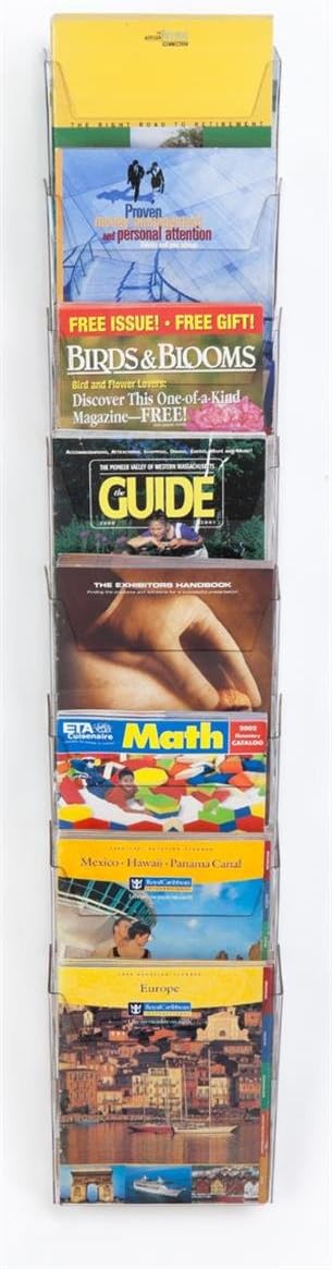 • Eight individual pockets hold and organize a variety of periodicals up to 8-1/2 x 11-inches wide.