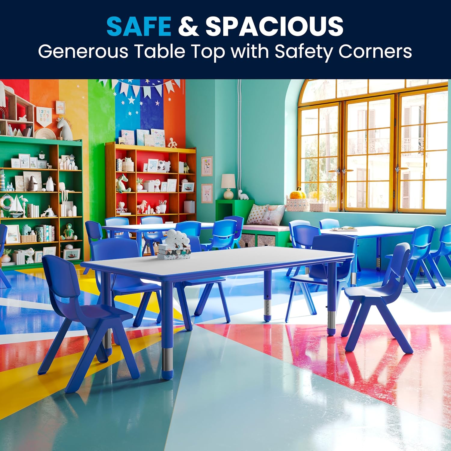 Flash Furniture Wren Adjustable Classroom Activity Table for School and Home, Plastic Activity Table for Kids, 23.625" W x 47.25" L, Gray/Blue