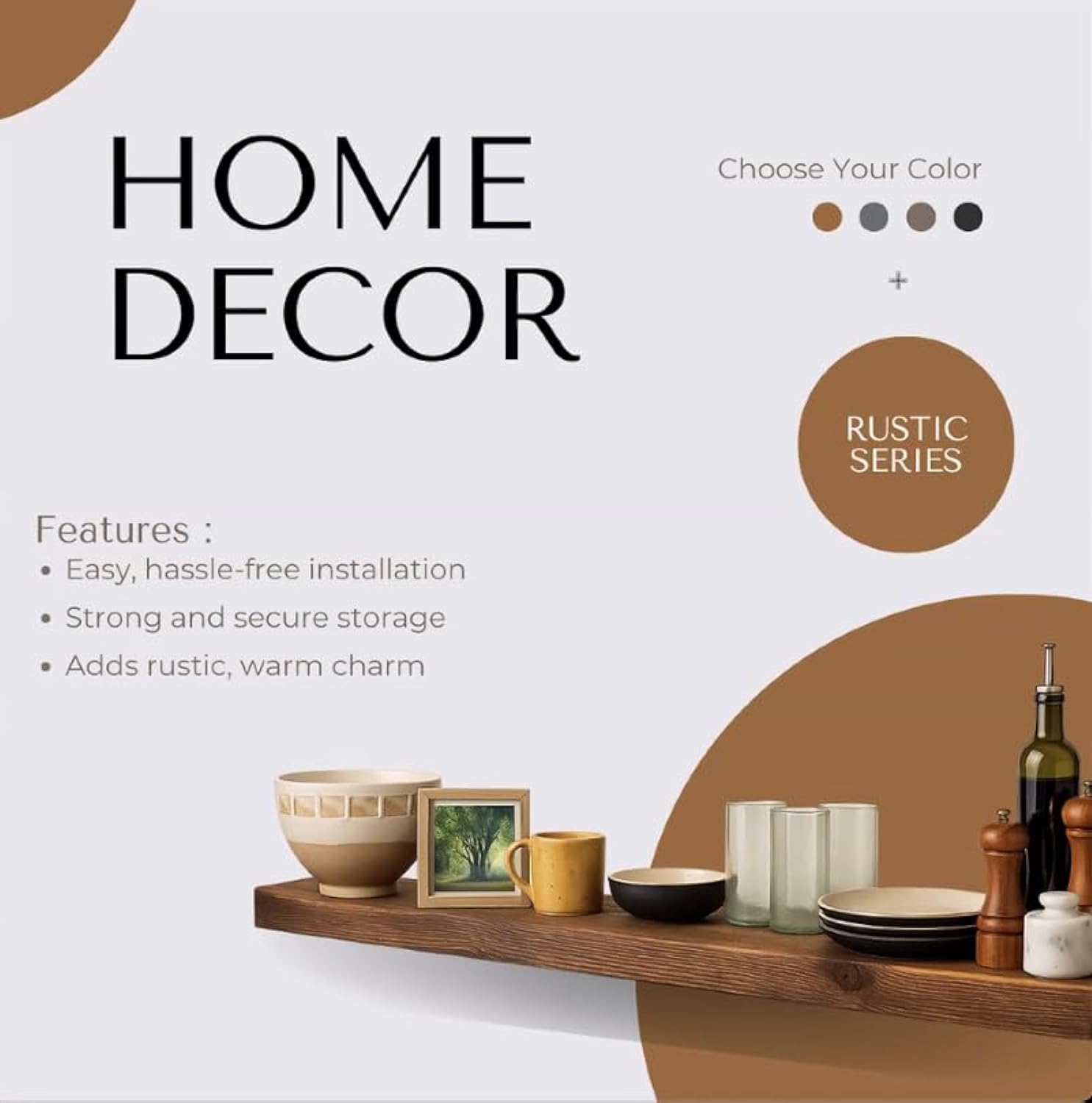 • Elevate Your Space with Rustic Charm: Transform your living room or any space with our large floating shelves for wall. These 48 inch floating shelf beauties, crafted from natural wood, add a touch of rustic warmth and provide ample display space for your cherished items.