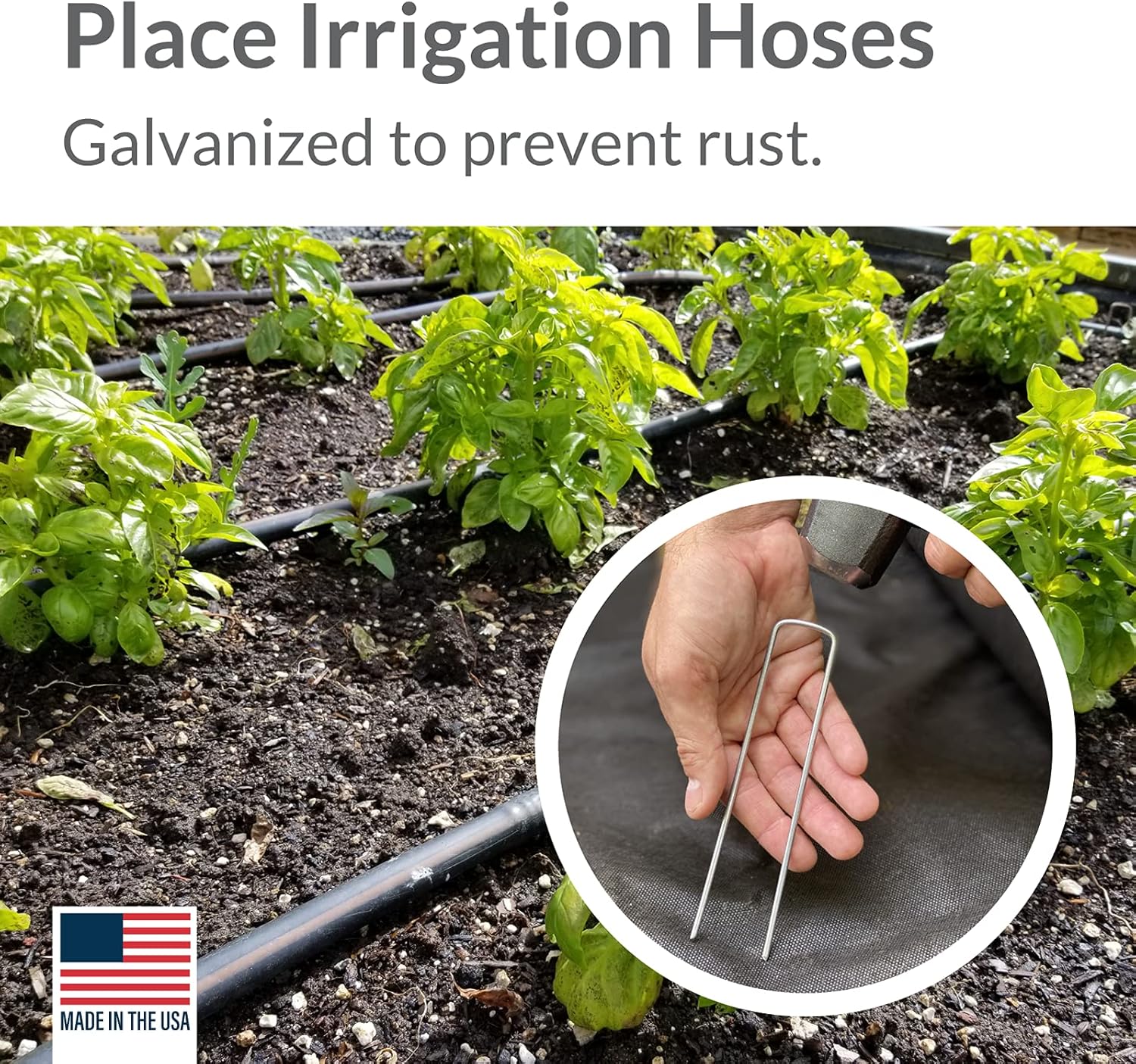 • Secure better 6-inch length 1-inch square top. Sharp ends help penetrate weed block fabric