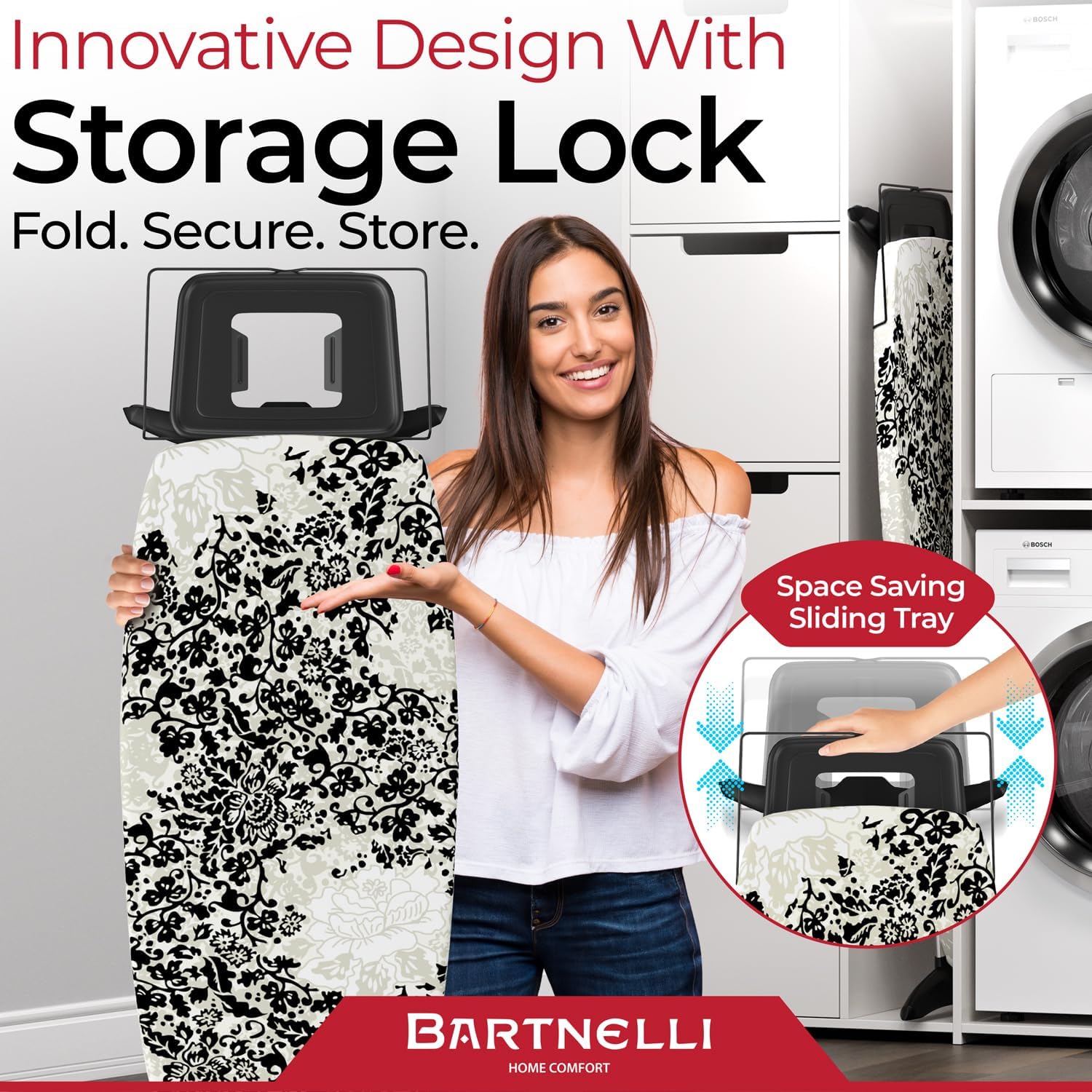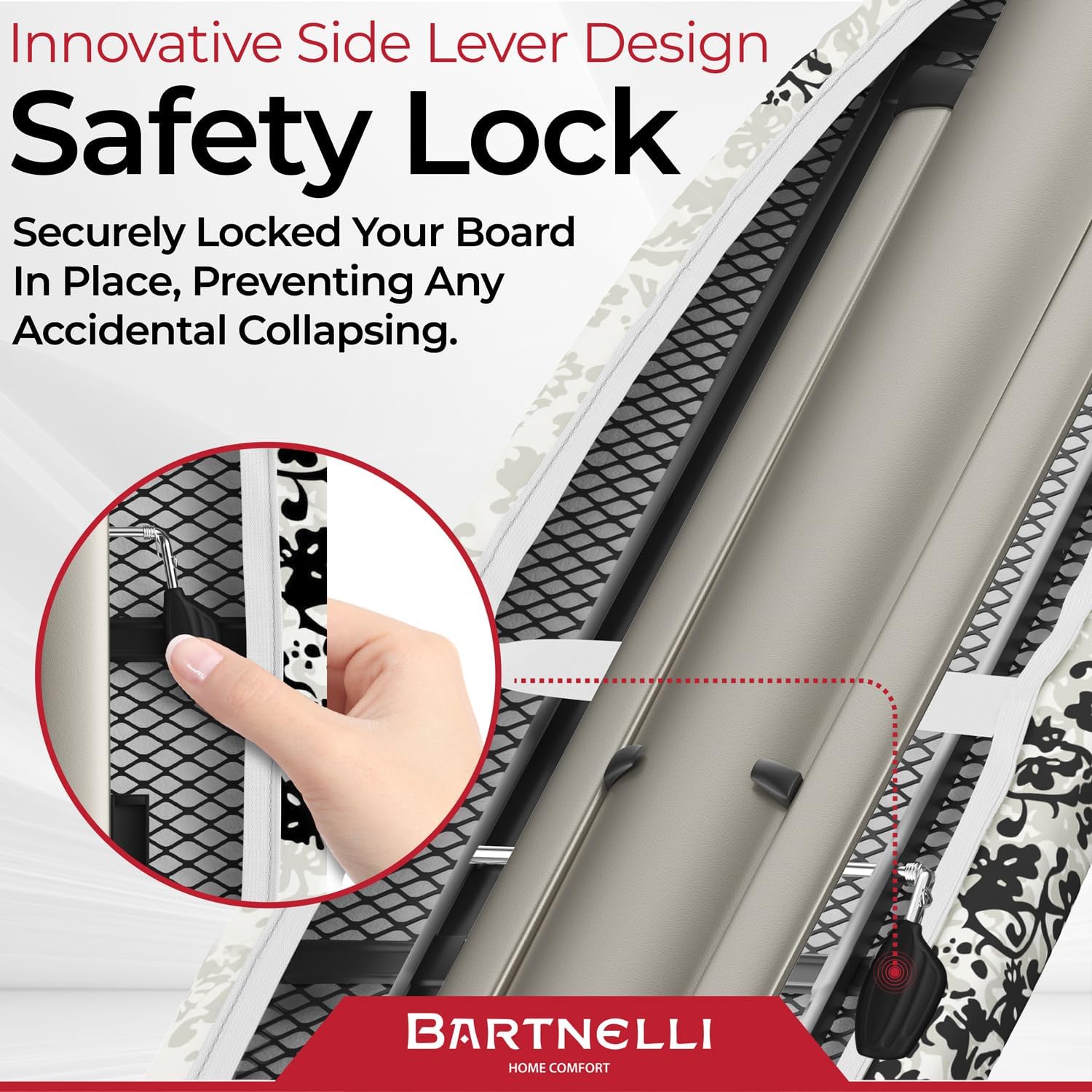 • CUSTOMIZE TO YOUR HEART'S CONTENT – HEIGHT & STORAGE, SOLVED! What if your ironing board could fit you perfectly and vanish out of sight when not needed? Say hello to adjustable heights and easy folding with a secure lock for storage. Tailor it to your comfort, then tuck it away without a second thought. Finally, a board that adapts to your life, not the other way around. Comfort and convenience? Check and check!
