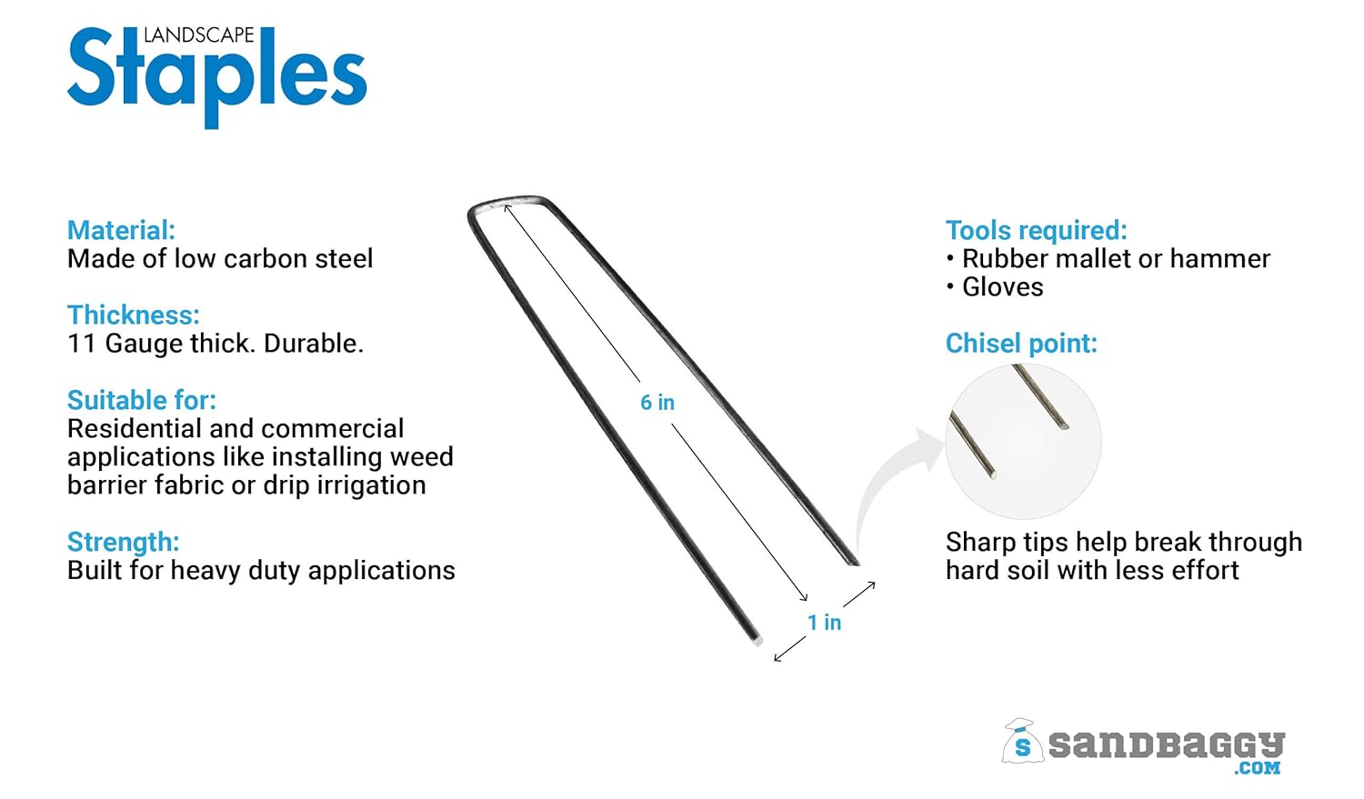 • SEEN EVERYWHERE ACROSS AMERICA - Whether on a job site, national park or airport across this country, Sandbaggy landscape fabric staples can be found securing landscape fabric & irrigation piping