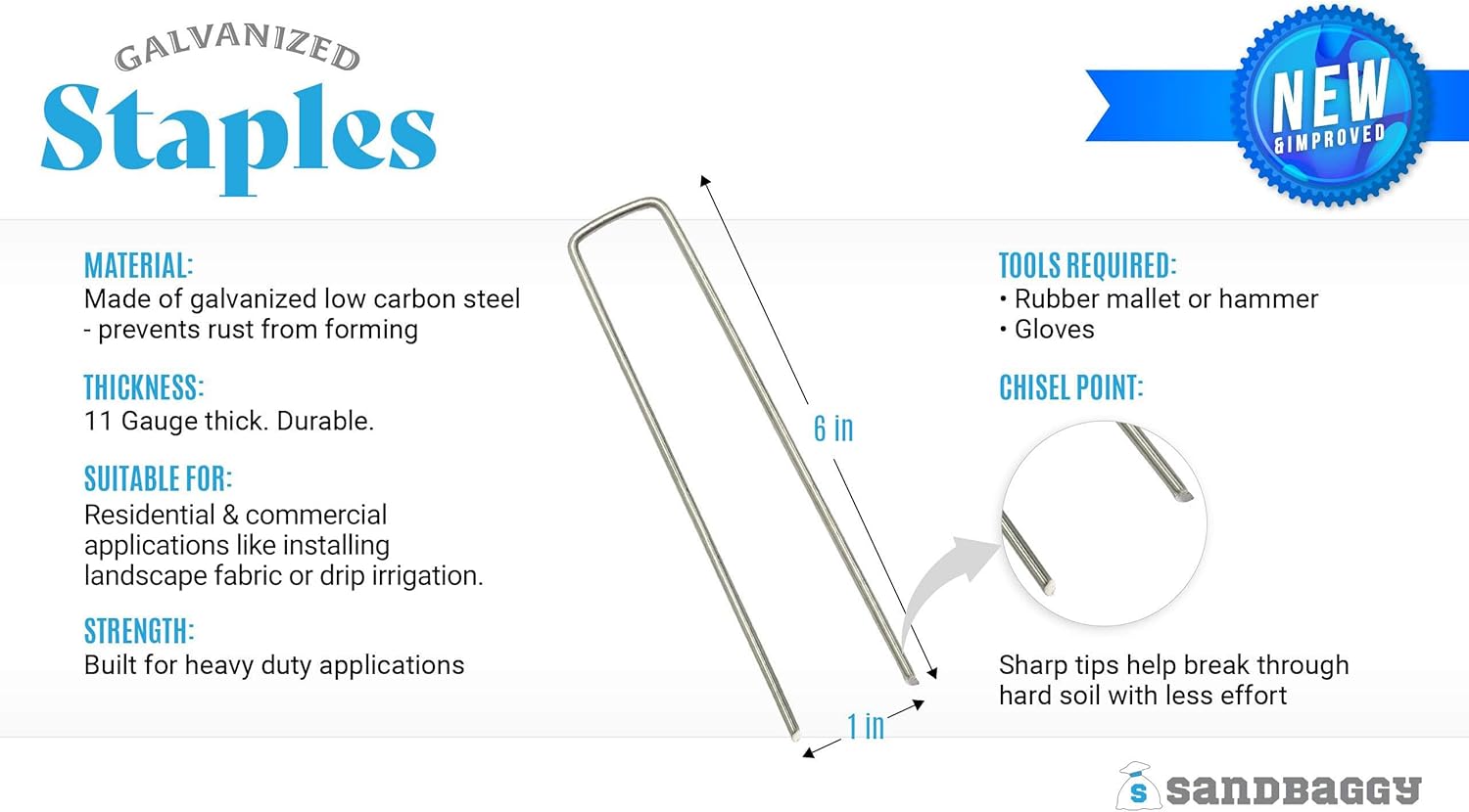 Sandbaggy 500-Count 6-Inch Galvanized Landscape Staples - SOD Garden Stakes ~ Trusted by Farmers & Contractors Across The USA