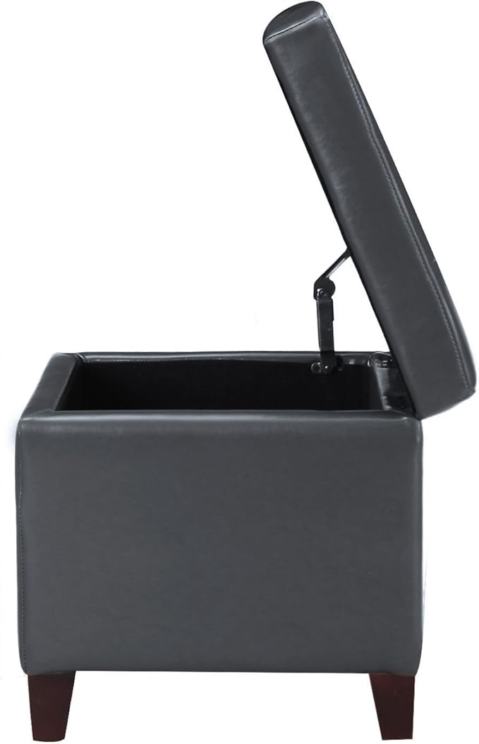 Adeco Bonded Leather Square Tufted Cubic Cube Storage Footstool, 18" Inch Ottomans & Storage Ottomans, With Lid, Dim Gray