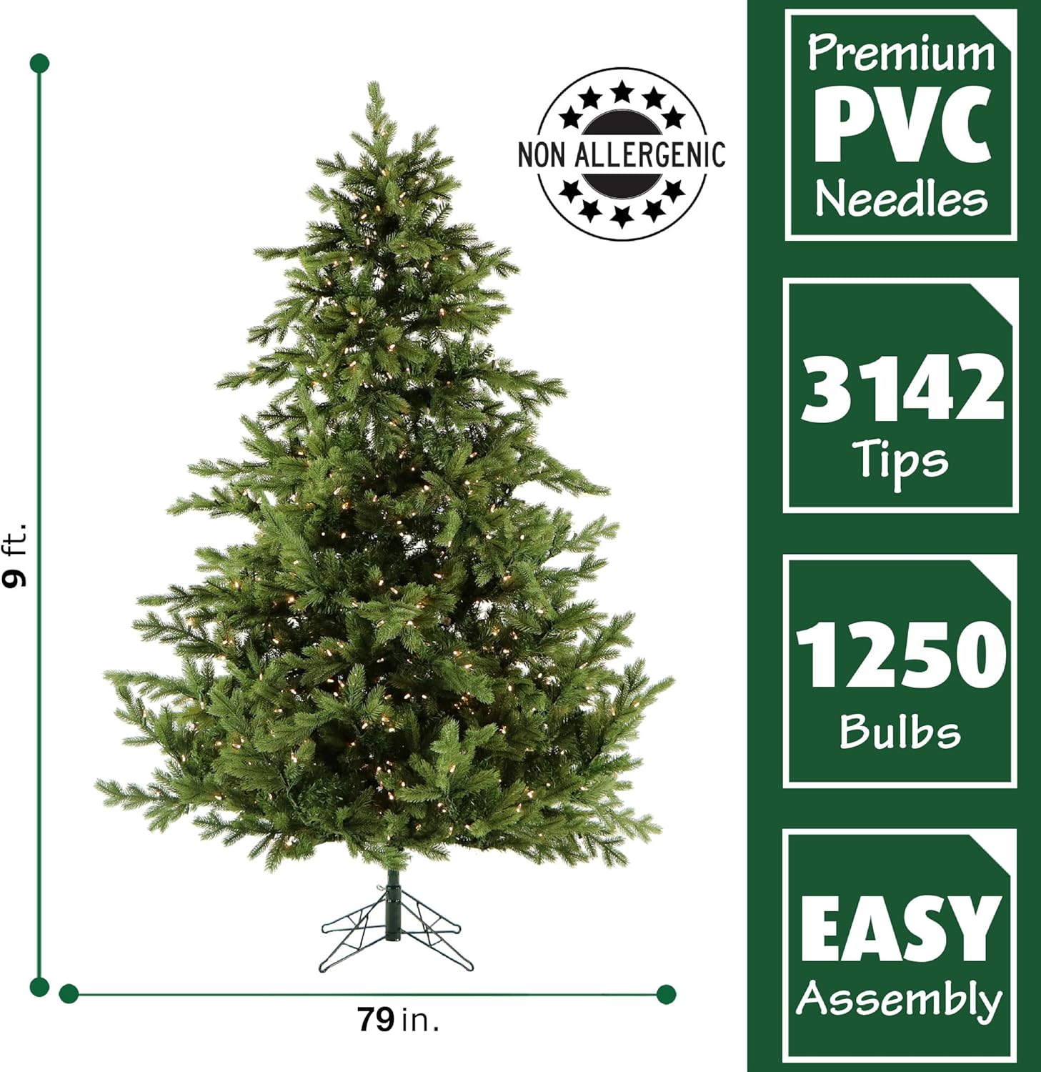 • Prelit: Prestrung with 1250 warm white LED lights to bring a festive glow to your home