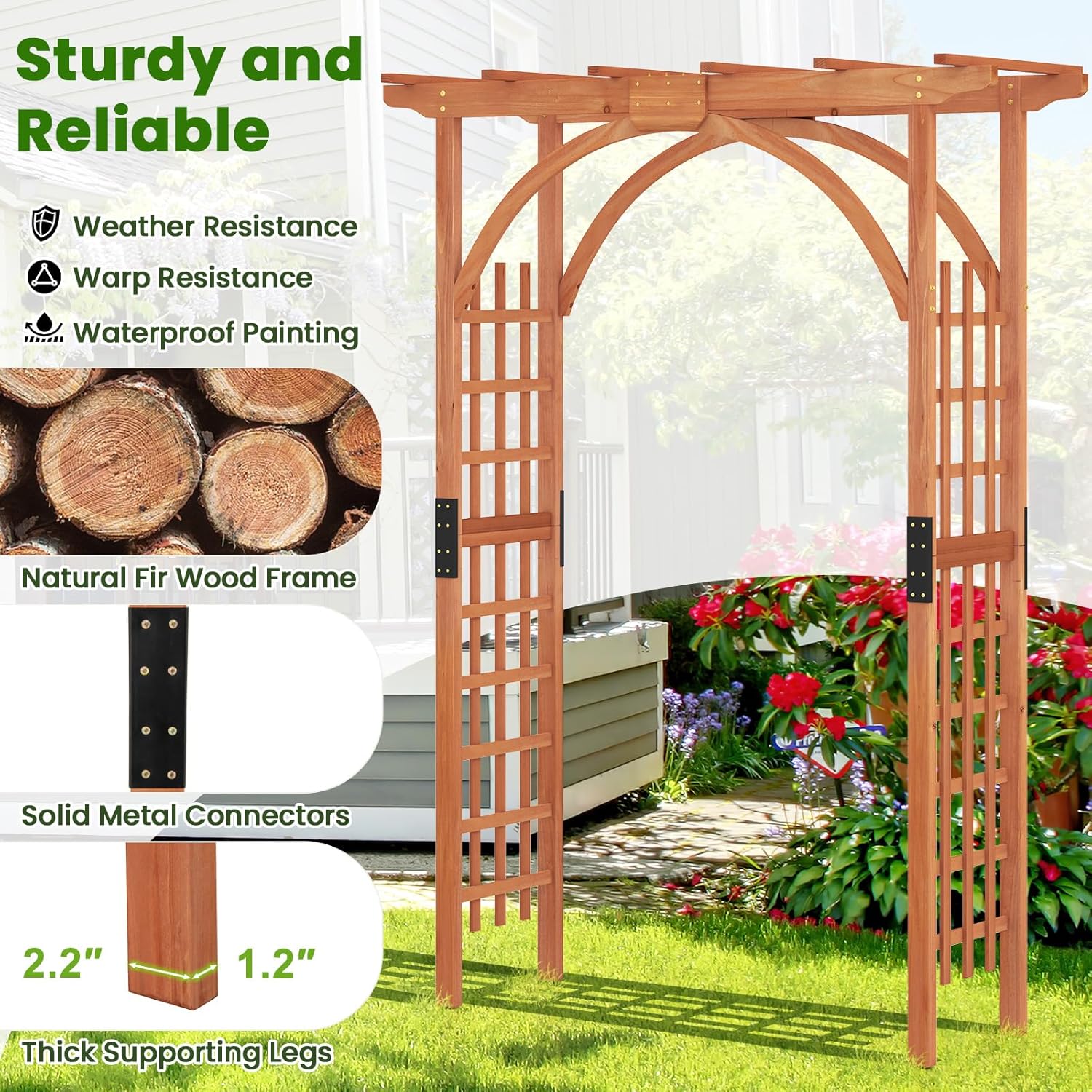 Giantex 85inch Wooden Garden Arch Wedding Arch for Ceremony, Garden Arbor Trellis for Climbing Plants Vines, Easy Assembly, Outdoor Flower Arches Wedding Arbor for Bridal Party