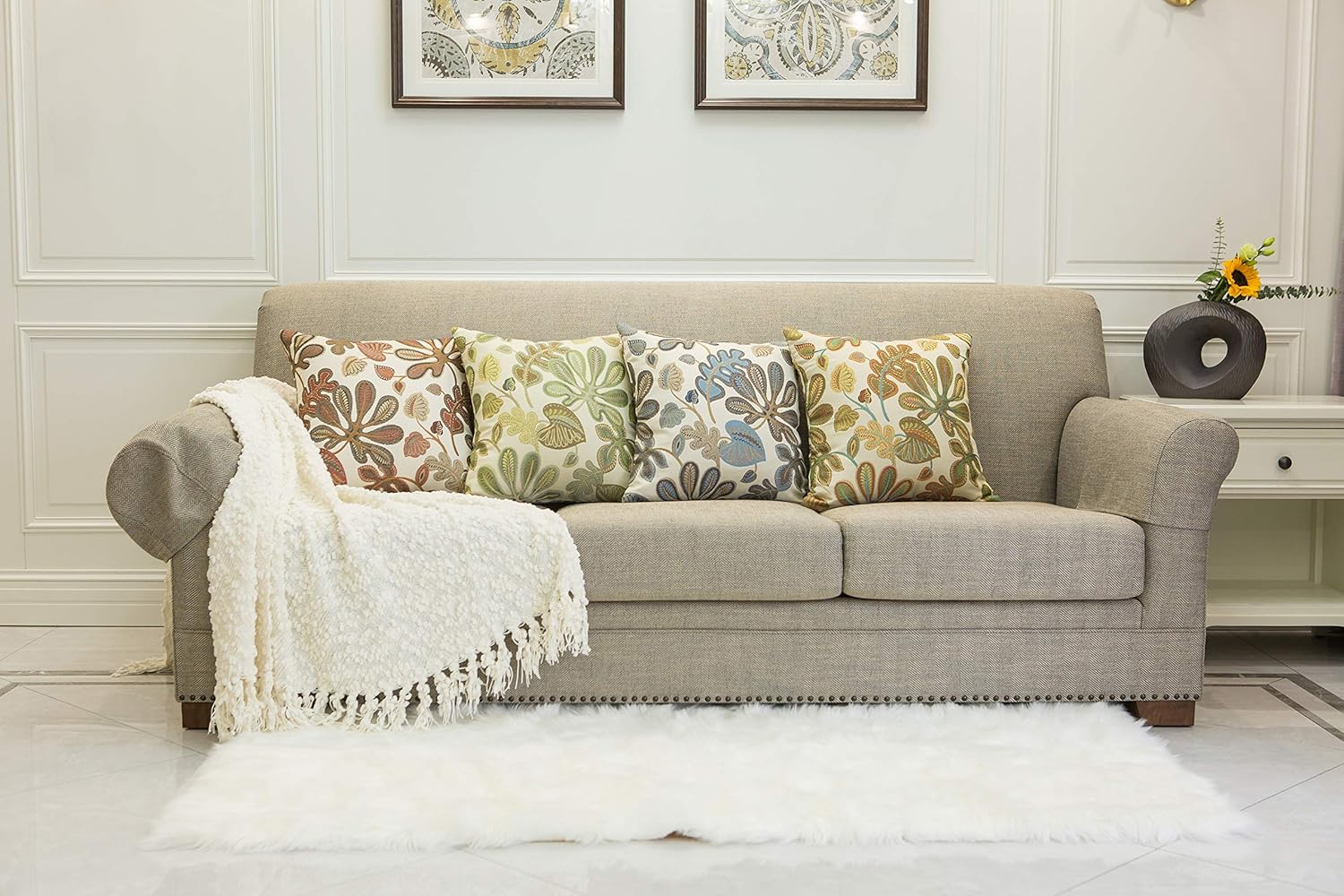 Set of 2 Jacquard Tropical Leaf Pattern Throw Pillow Covers Decorative Pillowcase 20X20 Inches,Blue Cream