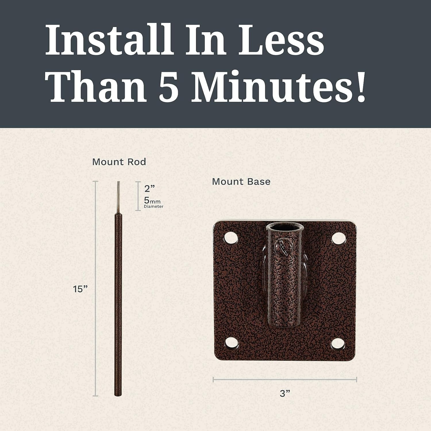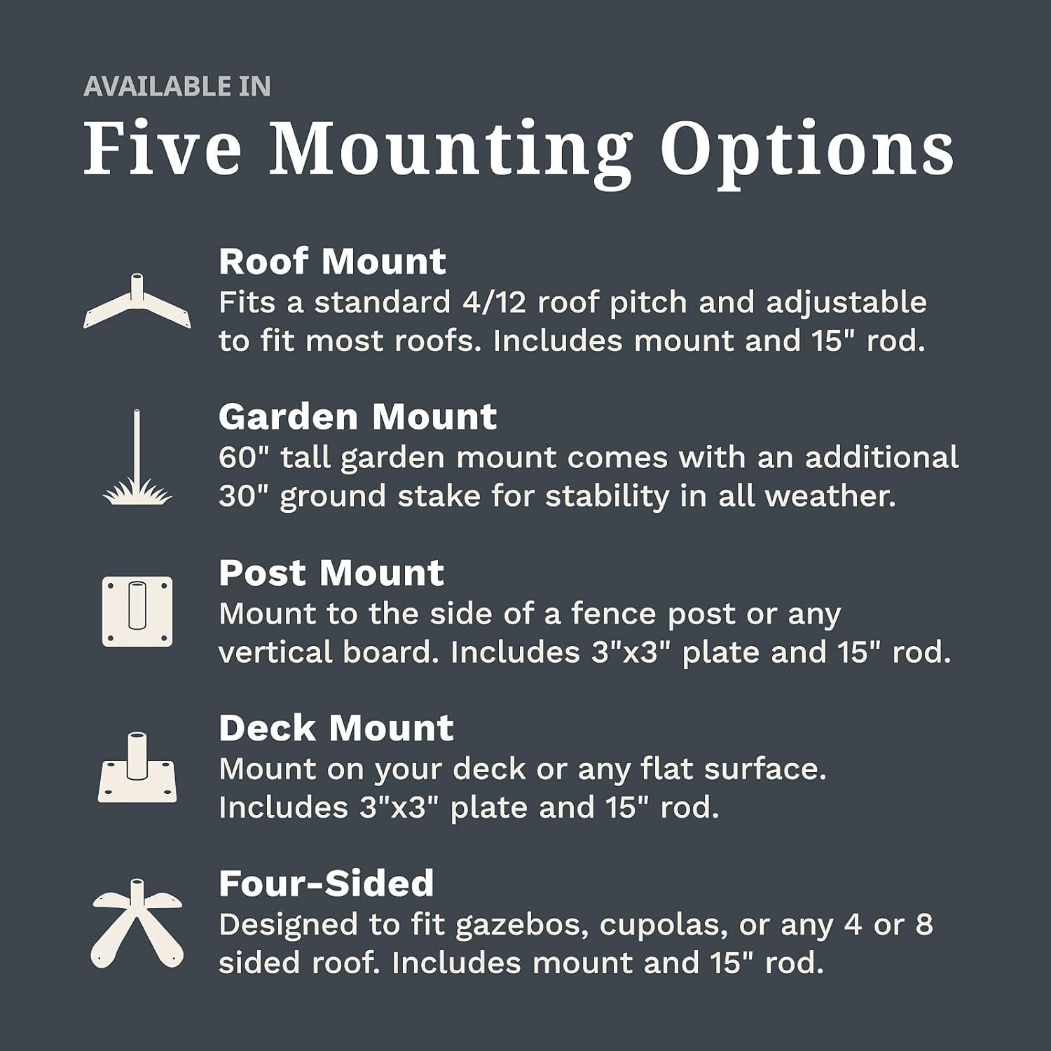 • Easy Installation – Installs in less than five minutes! Topper designs are interchangeable to easily customize for every season or occasion. Other mounting types can also be swapped, with options for a roof, garden stake, deck, or wood post.