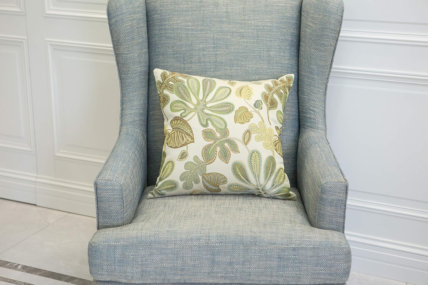 Set of 2 Jacquard Tropical Leaf Pattern Throw Pillow Covers Decorative Pillowcase 20X20 Inches,Green Cream