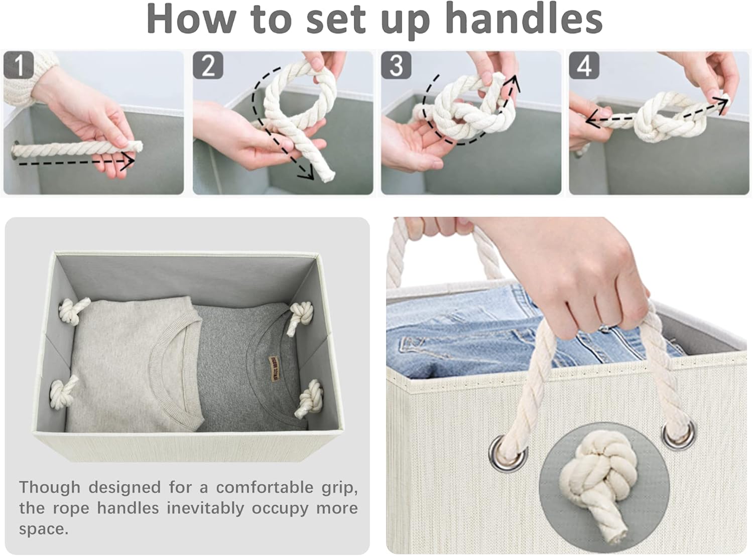 • The storage basket with 2 soft rope handles can support a weight of up to 30 pounds.