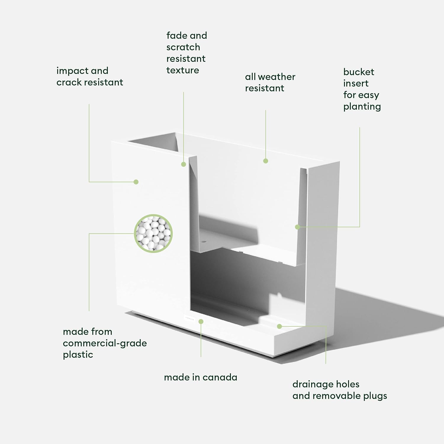 Veradek Block Series Span Plastic Planter - Tall Rectangular Planter for Indoor or Outdoor Patio/Porch, White, 24.25 in Height, 12 in Width, 30 in Length