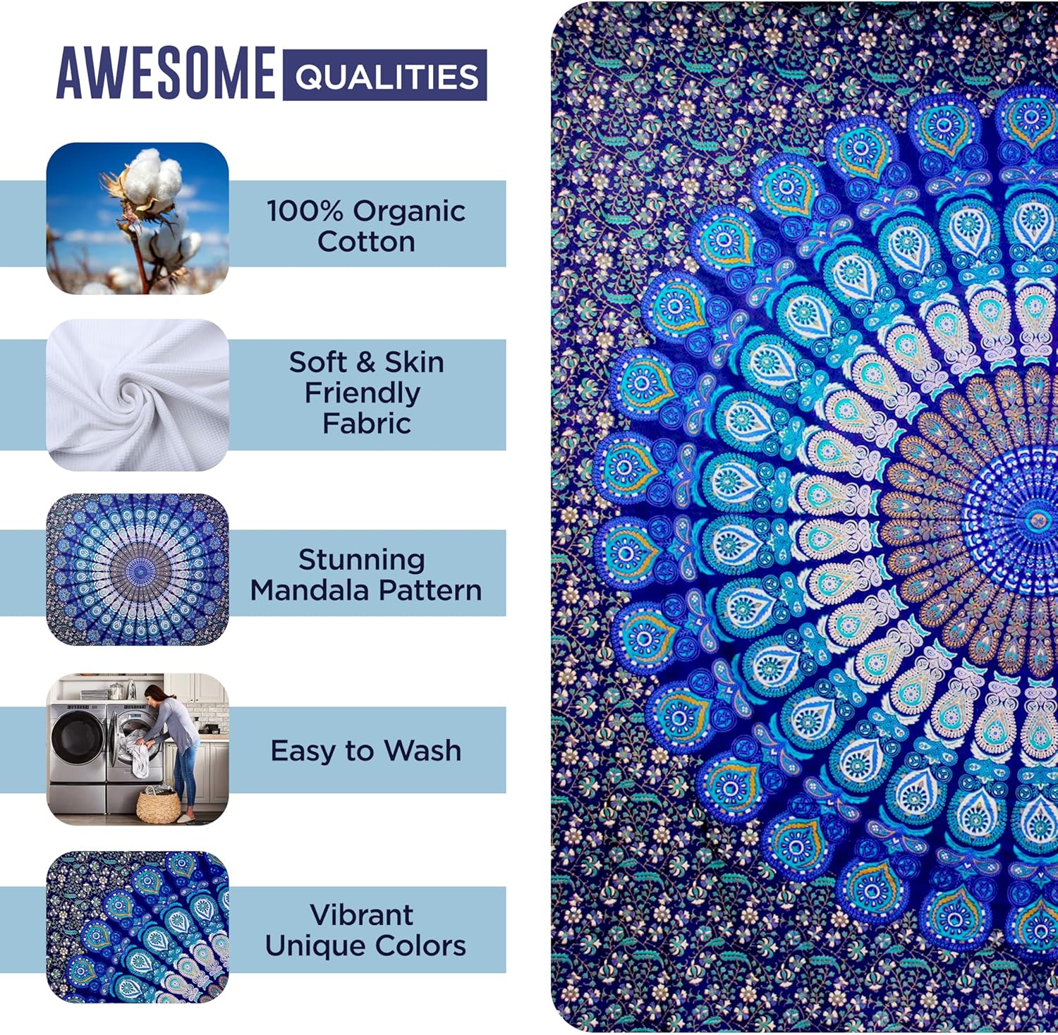 raajsee Blue Turquoise Tapestry- Best Mandala Wall Hanging- Bedding Tapestry For Bedroom Aesthetic-Size QUEEN 210 X 220 CMS