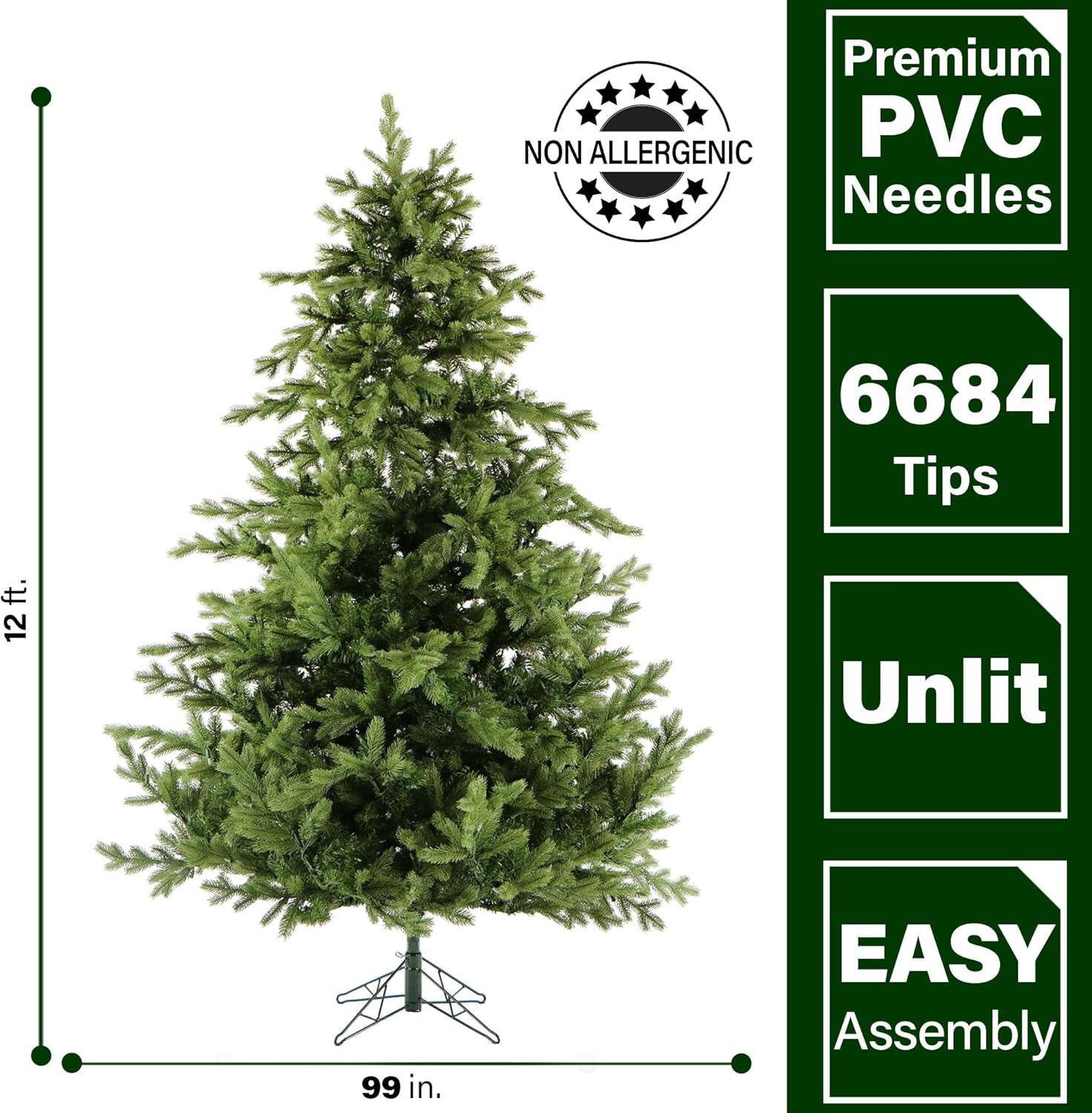 • 12-foot Tall: Standing 12-foot tall with a 99-inch diameter, this beautiful tree will make a statement in grand entryways with cathedral ceilings, making this tree the focal point of your home