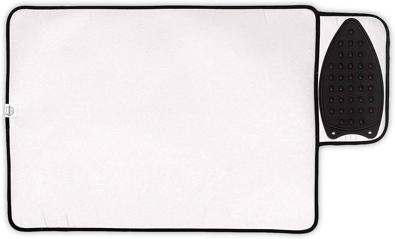 Encasa Homes Ironing Mat/Pad - Metallic Silver (Small 28"x20") with 5mm Foam Padding & Silicone Iron Rest for Steam Pressing on Tabletop or Bed - Heat Reflective, Portable, Quilting