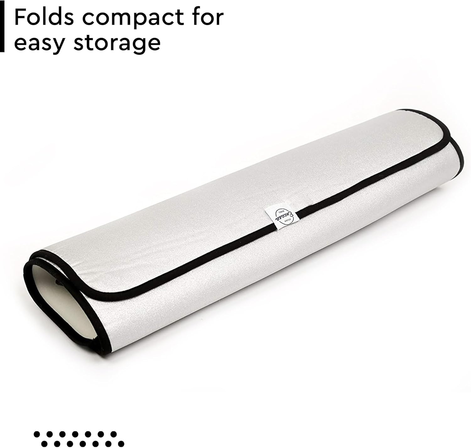 • QUALITY: Metallic Silver layer is coated on fabric & laminated with thick Foam pad (0.2") for soft and quick ironing. Silicon Mat attached in one corner for keeping the hot iron.