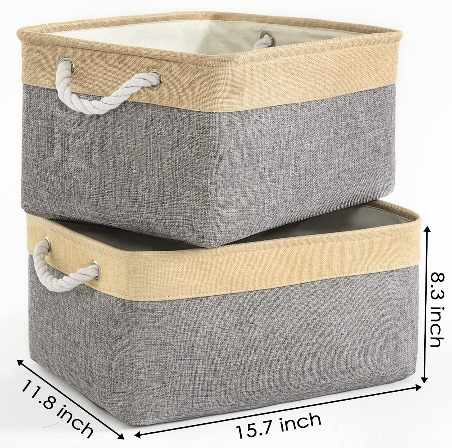 • LARGE STORAGE BIN & PROFESSIONALLY & PRACTICAL - 15.7L×11.8W×8.3H, can be used as storage baskets for shelves,closet storage bins, linen closet organizer,nursery basket storage,laundry baskets, bathroom towel storage,also can organizing baby Stuff,clothing, kid’s toys,pet toy products, laundry, towel, bedsheet,sport gears,suitable use in bedroom, living room,study room,rest room,bathroom, kitchen,office,shelf,closet and cabinets. excellent choice for keeping your space nice,tidy and organized