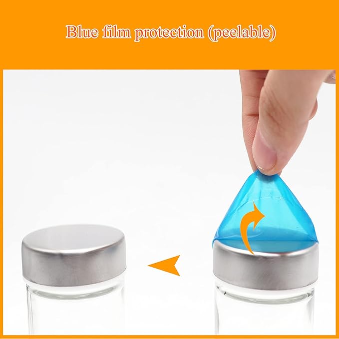 • 【16 Glass Jars】DOUBLE2C spice rack is equipped with 16 3oz refillable glass jars(3.5"x1.3") with metal over-caps, as well as with an inside plastic "shaker top" that keeps the spices from getting into the cap. (Note: Spices are not included.) The top of the lid with a blue protective film-peelable.