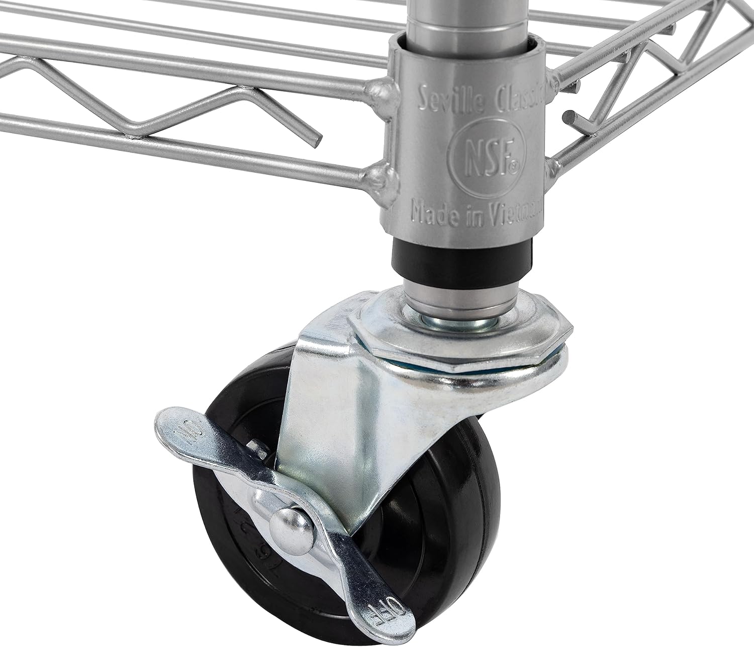 • Includes 4 wheels (with 2 locking) and leveling feet