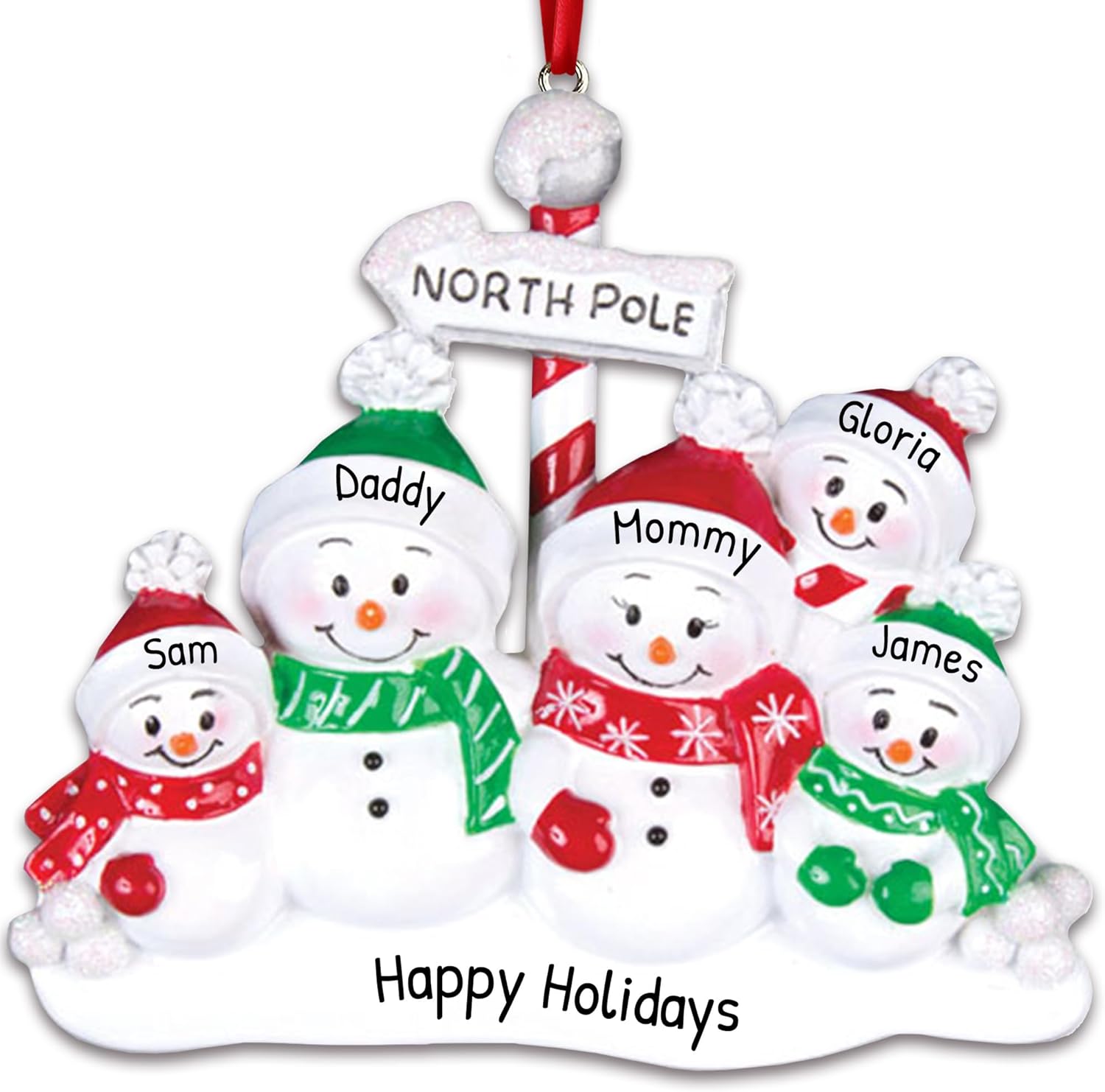• 🎁 Celebrate Your Family of 5: Mark a joyful milestone with a personalized family of 5 Christmas ornament 2025. Whether it’s your first year as five or part of a cherished tradition, this keepsake honors your growing bond and tells your story with warmth, love, and festive cheer. This snowman family of five ornament features smiling snow faces and carrot noses, red and green winter accessories, and a North Pole sign with glitter top, bringing a cozy snow scene holiday theme to life.