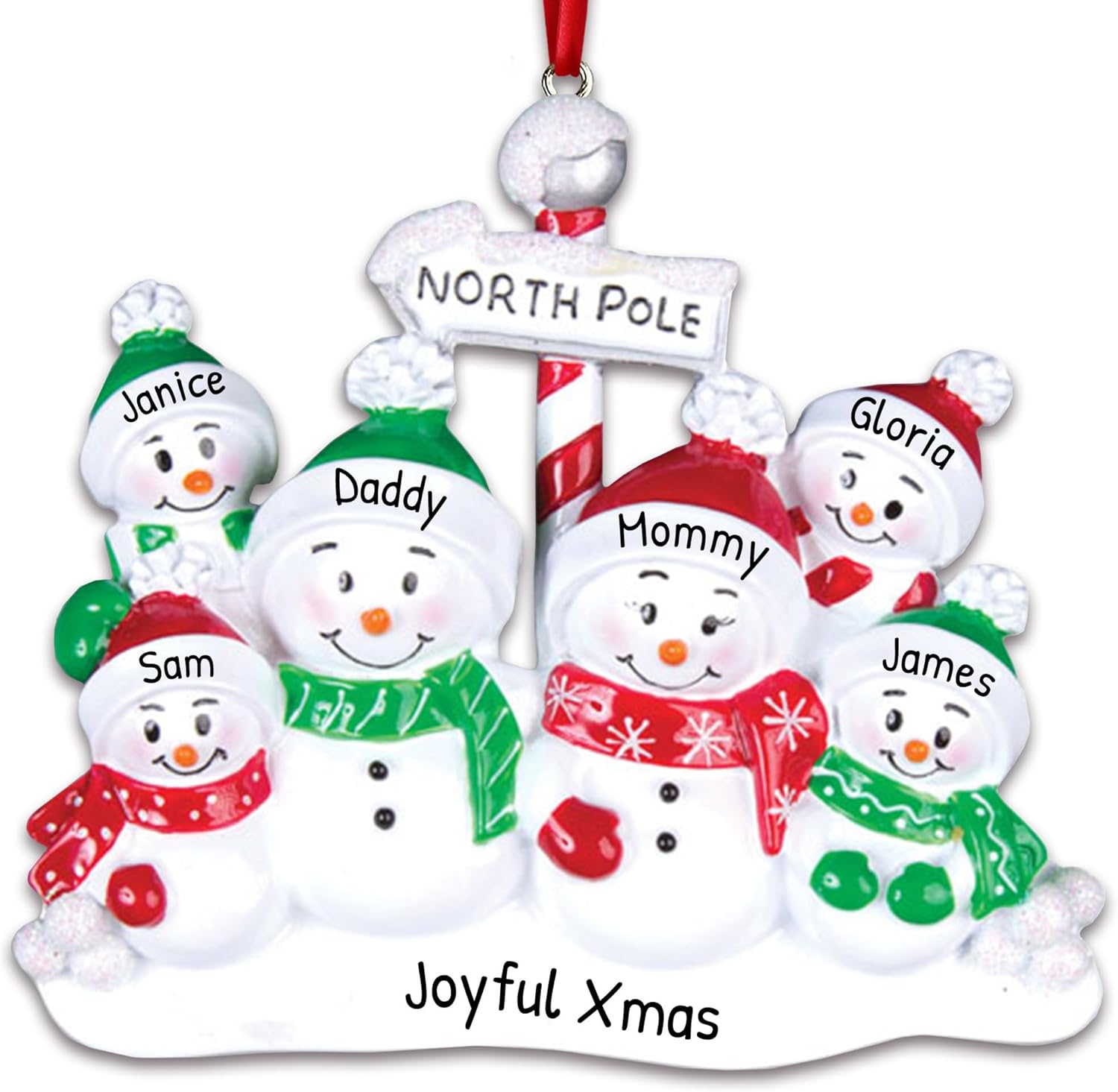 • 🎁 Celebrate Your Family of 6: Mark a joyful milestone with a personalized family of 6 Christmas ornament 2025. Whether it’s your first year as six or part of a cherished tradition, this keepsake honors your growing bond and tells your story with warmth, love, and festive cheer. Celebrate winter magic with this cheerful Christmas decoration featuring a snowman family of six design all bundled in red and green winter accessories. They stand proudly beneath a North Pole sign ornament, bringing whimsical charm to your tree. With its snowy white holiday scene, this piece adds heartwarming joy to your seasonal décor.