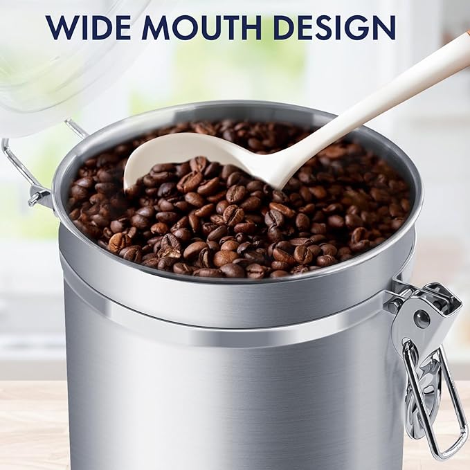• Easy to Use and Clean --- ENLOY stainless steel kitchen canisters are made with a wide 4.7" opening which makes it easy to use full size 1 cup measuring scoops. The canisters are dishwasher-safe, however we recommend hand-washing to protect the finish. One Piece Design will not hide dirty. A quick wipe with a damp cloth is sufficient for a light cleaning.