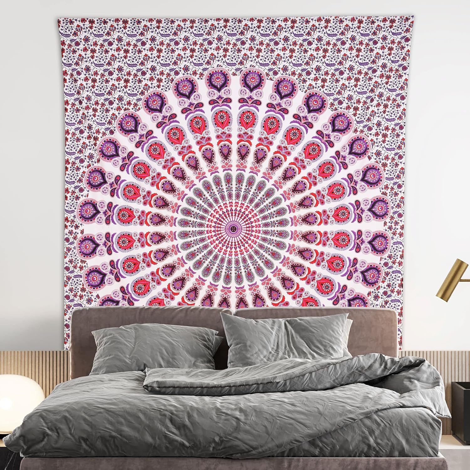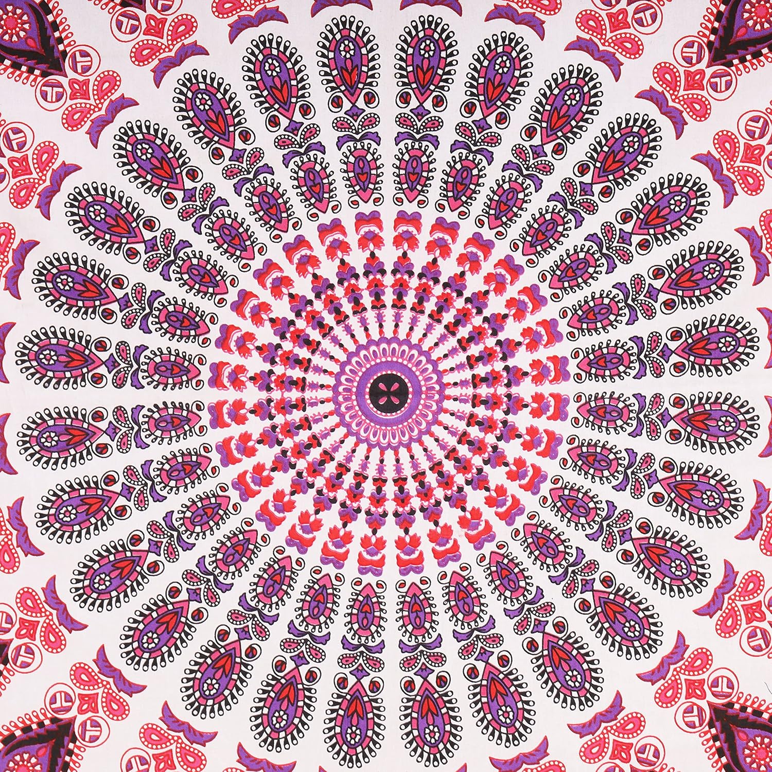 Bless International Handmade Indian hippie Bohemian Psychedelic Peacock Mandala Wall hanging College Dorm Beach Throws Table Cloth Bedding Tapestry (Pink Blue, Queen(84x90Inches)(215x230Cms))