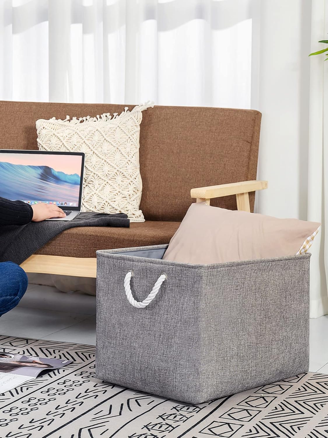 • SMALL STORAGE BIN & PROFESSIONALLY & PRACTICAL - 20.5Lx15.7Wx13.8H; TheWarmHome cube storage bins provide a solution to most needs: organizing and storing baby products,clothes,shoes,kid’s toys,pet products, toiletry storage, laundry,towel, blanket, bedsheet, sport gears, tissue,hats, scarves,socks,keys or other small items.can be used in bedroom, living room, study room,rest room,bathroom, kitchen,office,shelf, closet and cabinets.excellent choice for keeping your space nice, tidy and organized