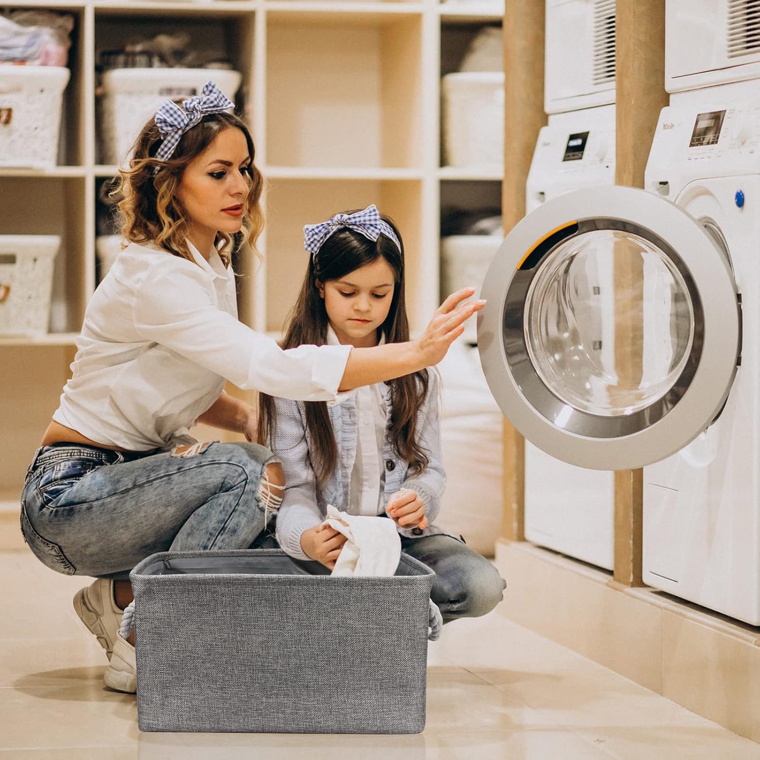 • CARE TIP - Collapsible design for space saving, before use to get the wrinkles out the fabric storage bin: either stuff the fabric storage cubes with blankets and pillows for a few days and the baskets will take the shape , or steam iron them at low-heat setting; dusting the basket with a soft dry cloth is recommended. Spot clean with light soapy water when needed. Not recommended to machine wash for there are metal frame.