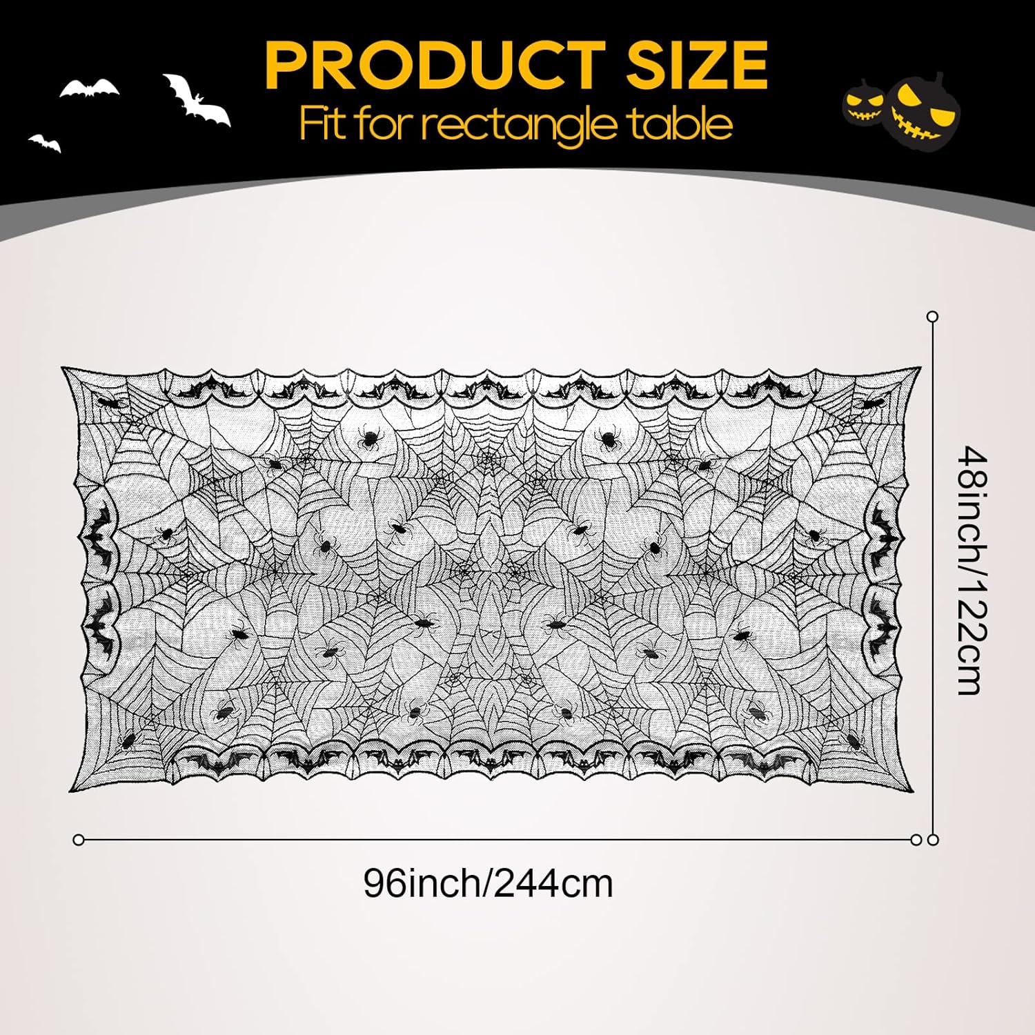 • PERFECT SIZE: Our spiderweb tablecloth measures 48 x 96 inch / 122x244cm (Length x Width), will fit table in all most size to dress up your Halloween party. Color: Black. Liner not included.