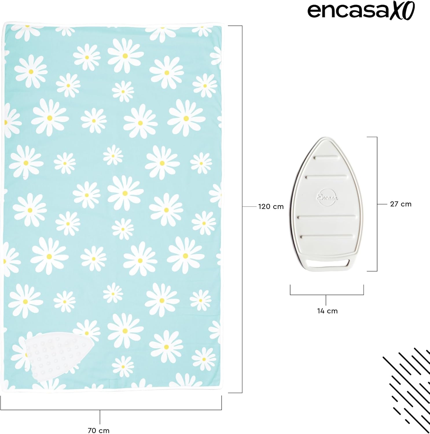 Encasa XO Ironing Mat/Pad (Large 48"x28") with 3mm Padding & Silicone Iron Rest for Steam Pressing on Tabletop or Bed - Heat Resistant, Portable, Quilting & Travel Blanket - Daisy Blue
