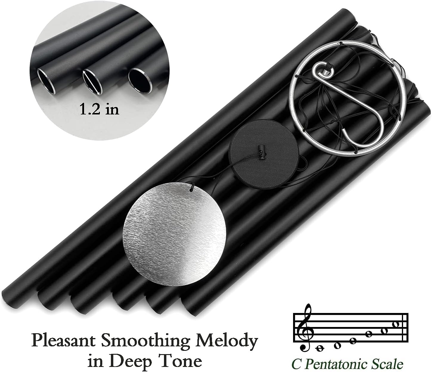 • 45 Inch large Wind Chimes - The longest tube of the large wind chimes is 23.6Inch,diameter is 1.2Inch.6 aluminum powder-coated tubes,every metal tube of this large wind chime is hand-tuned by our professional tuning experts to achieve a superior musical performance.Heavy duty nylon cording high density striker for a clear tone and resonances.