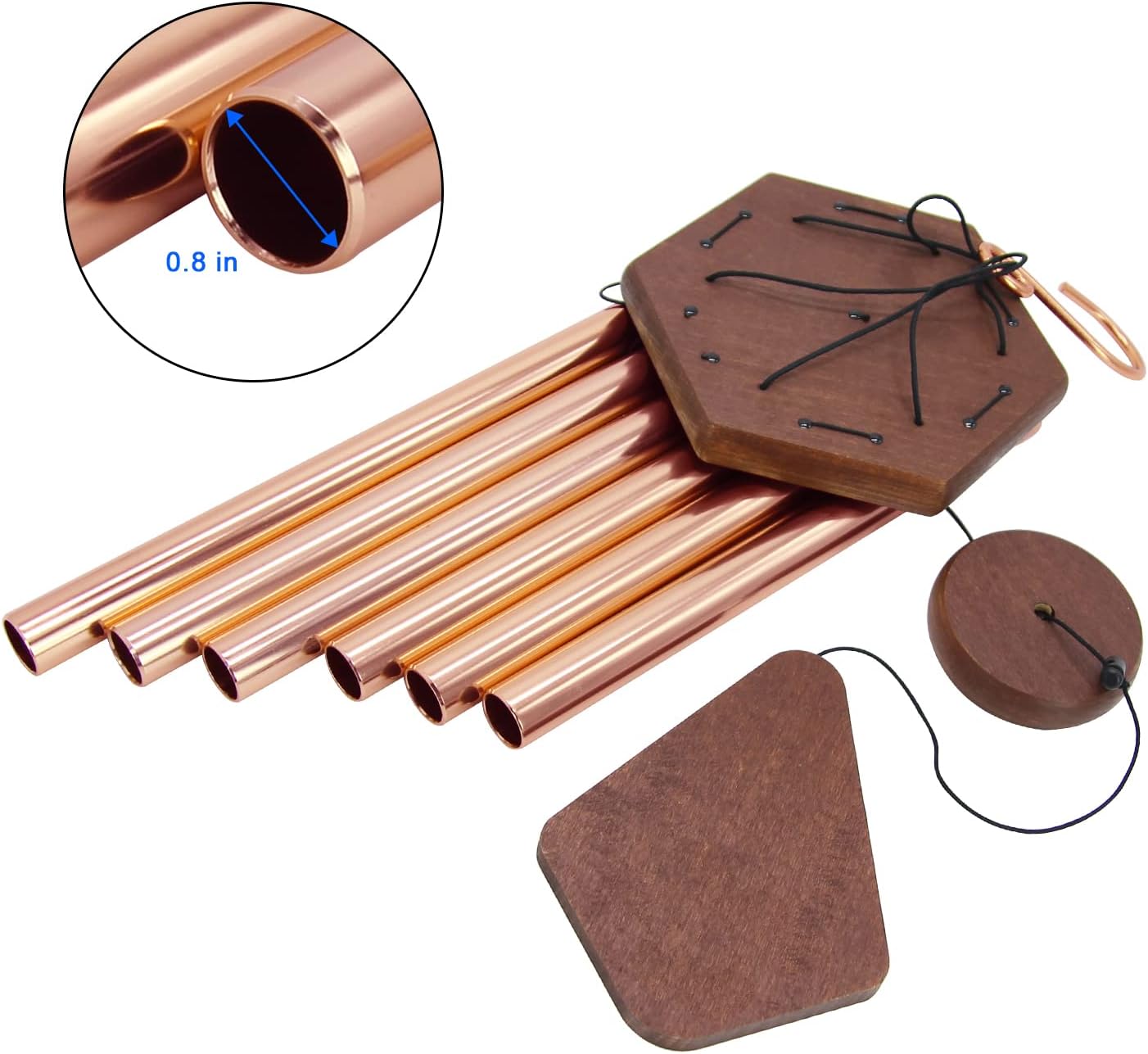 • ♪Wind Chimes Outdoor- 30'' is the best size for your Outdoor and Indoor Decor. This decorative chime comes with a stronger metal hook, easily to hang. The longest tube is 14.3''. 6 aluminum powder-coated tubes are hand-tuned by our professional tuning experts to achieve a superior musical performance. Heavy duty nylon cording high density beech wood striker,made from FSC-Certified wood, for a clear tone and resonances. Thick tubing wall creates a longer lasting deep tone. The sound is soft, deep tone and rela