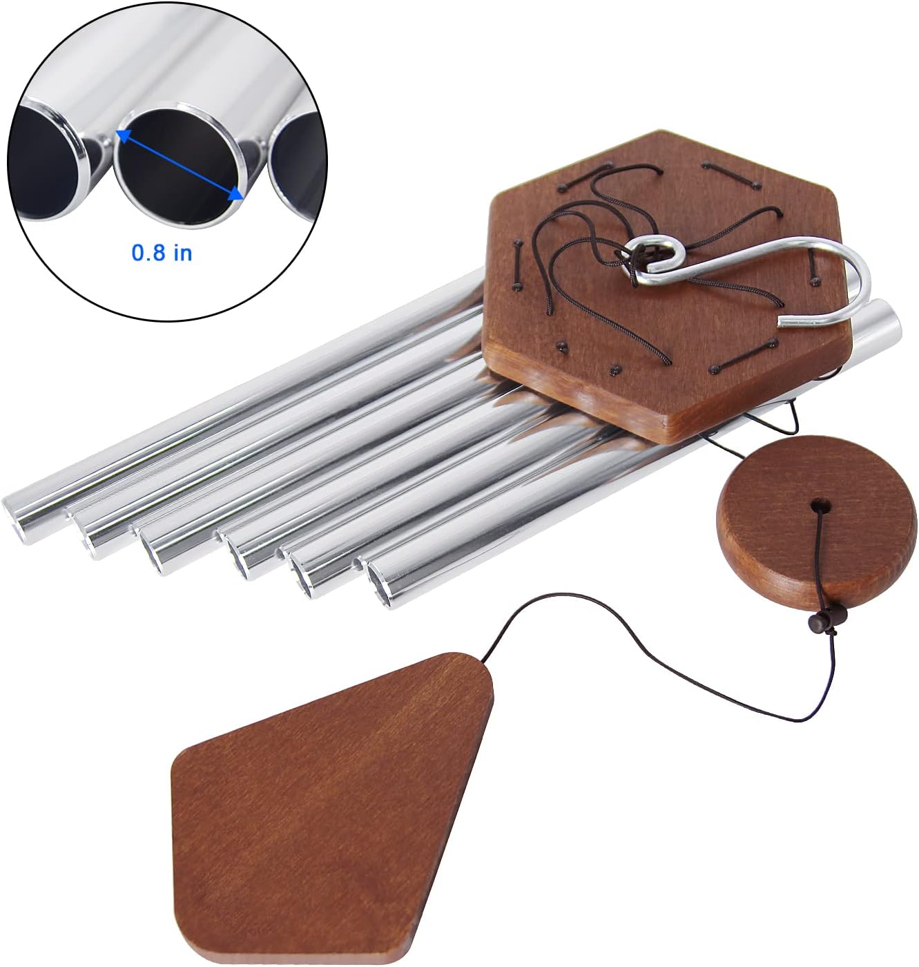 • ♪Wind Chimes Outdoor- 30'' is the best size for your Outdoor and Indoor Decor. This decorative chime comes with a stronger metal hook, easily to hang. The longest tube is 14.3''. 6 aluminum powder-coated tubes are hand-tuned by our professional tuning experts to achieve a superior musical performance. Heavy duty nylon cording high density beech wood striker made from FSC-Certified wood, for a clear tone and resonances. Thick tubing wall creates a longer lasting deep tone. The sound is soft, deep tone and rela