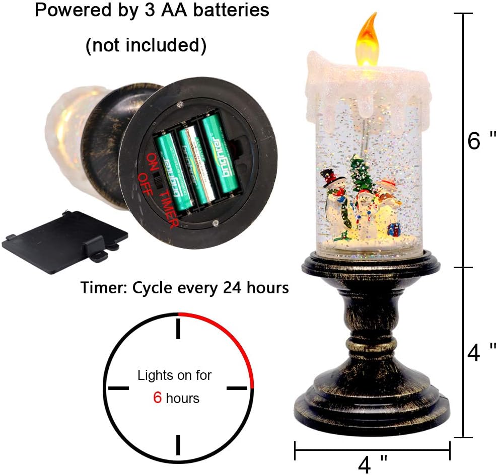 Eldnacele Christmas Snow Globe Candle Battery Operated Lighted Flameless Candles Light Swirling Water Glittering Spinning Candles for Home Decoration(Snowmen Family)