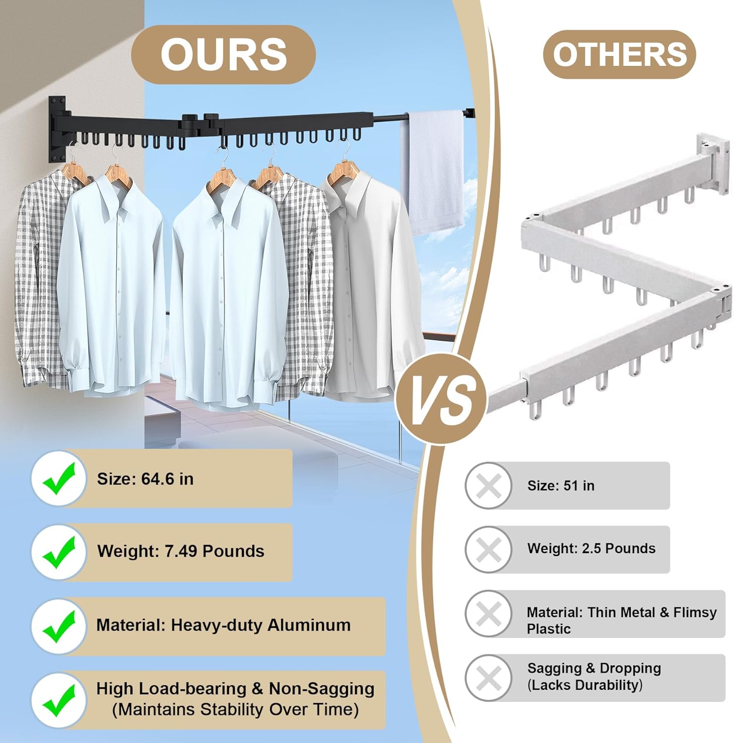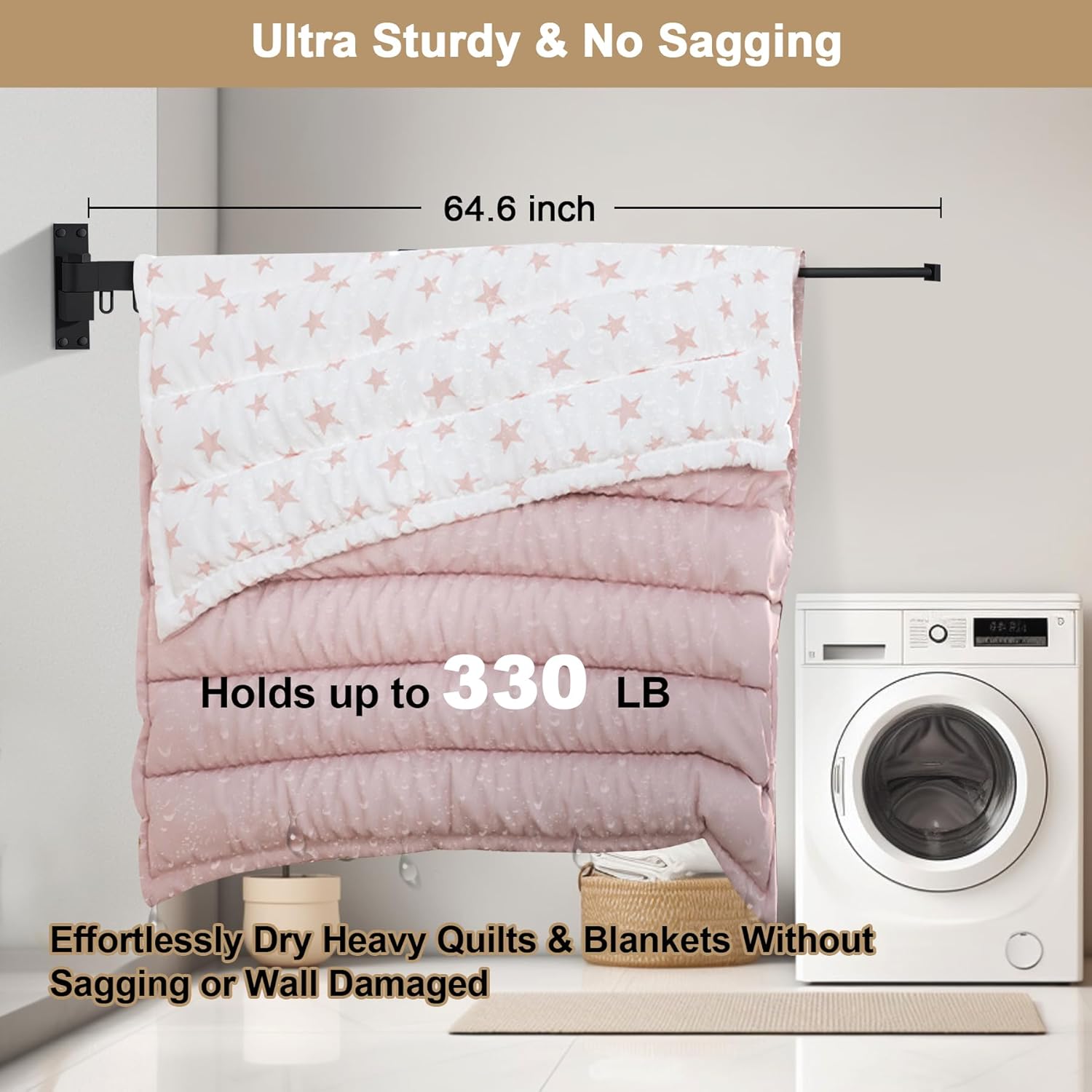 • 【Versatile Use】This laundry hanger dryer rack wall mount isn't just for clothes and towels, it also support heavy quilts and sheets thanks to it high loading capacity. Perfect for indoor or outdoor use, including laundry rooms, patios, and balconies, offering flexibility for various spaces. Plus, save on gas bills by air drying clothes.