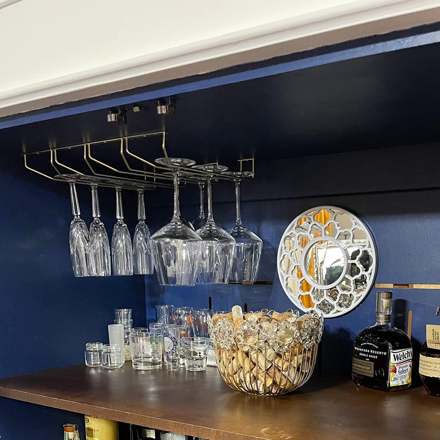 • STORAGE & ORGANIZATION: Install as many stemware racks as you need underneath the cabinets in your kitchen, bar, dining room, or anywhere you want. It looks great and keeps your stemware ready to go for your next impromptu gathering.