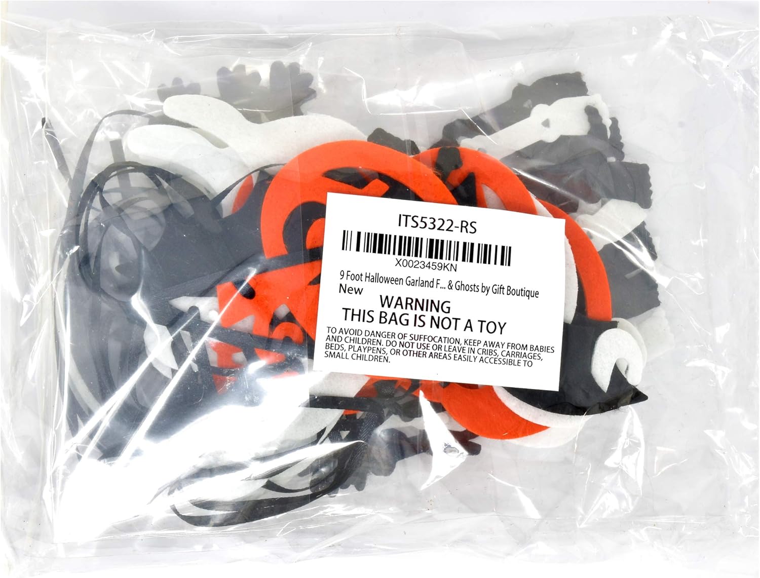 Gift Boutique - 9 Foot Halloween Garland Felt Banner Chain Decorations Indoor & Outdoor Party Supplies 18 Feet Total Pack of 2 Designs Skeletons Bat Pumpkin Ghost