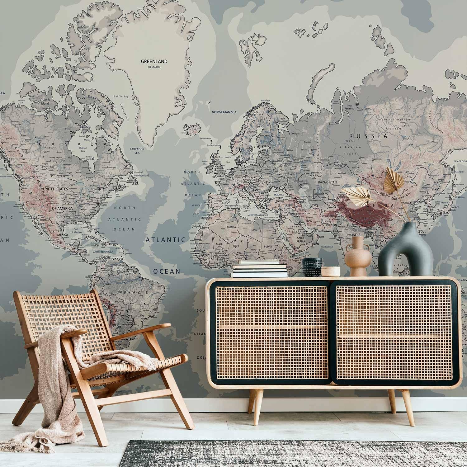artgeist Wall Mural World Map 154x110 in - XXL Peel and Stick Self-Adhesive Wallpaper Removable Large Sticker Foil Wall Decor Print Picture Image Design Map of The World k-A-0061-a-c