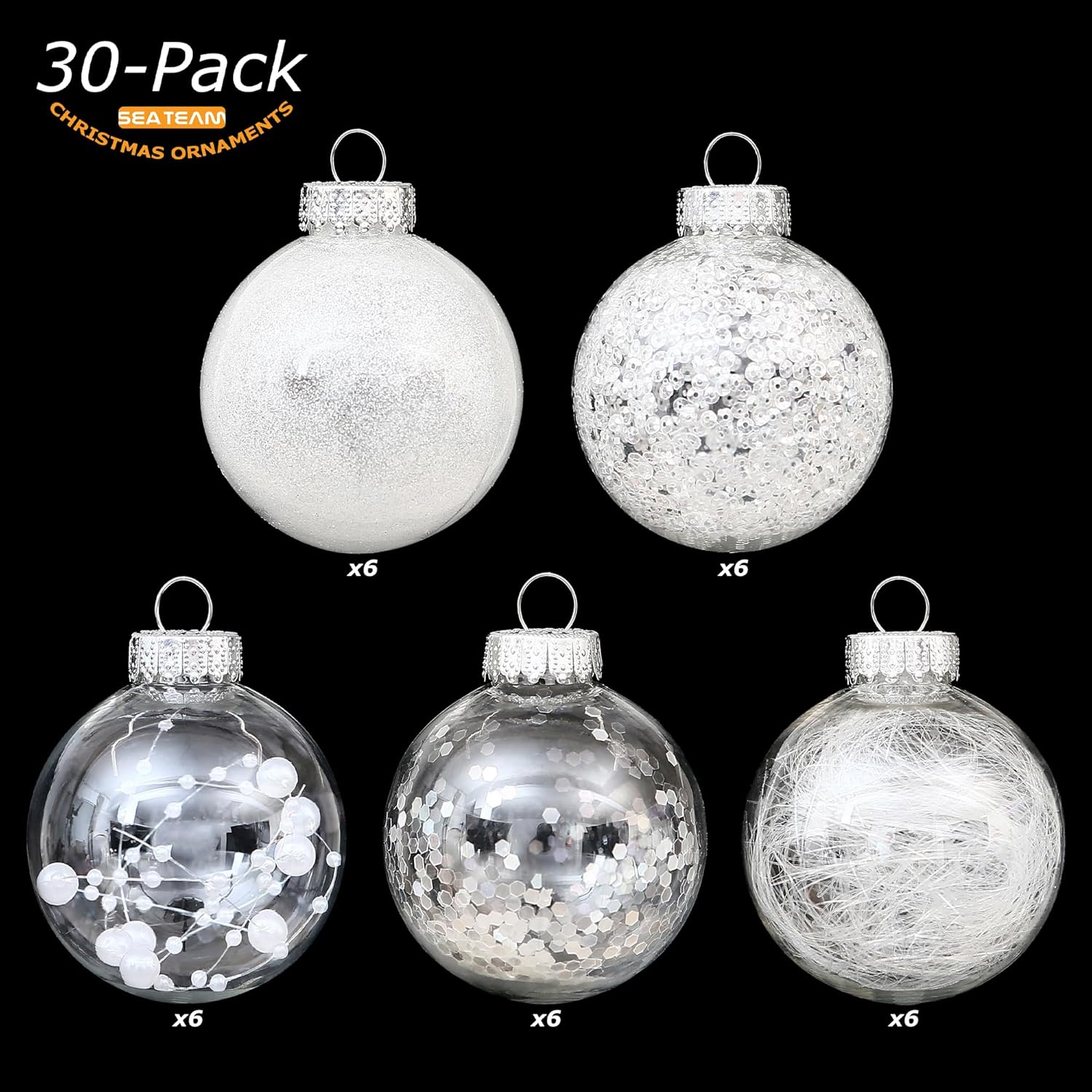 • DISMOUNTABLE TOP WITH RIBBON - Each ball ornament equips a dismountable metal top and comes a string thats already hook to the bulb for easy hanging. With the dismountable top, you can also stuff the clear ball with your favorite decorations
