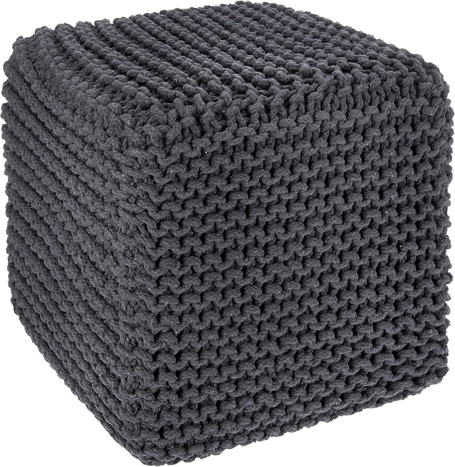 REDEARTH Cube Pouf Foot Stool Ottoman - Hand Knitted Coffee Table - Cotton Cord Boho Pouffe - Home Décor Poof - Stuffed Footrest for Living Room - Bedroom - Patio (16" x 16" x 16") - Dark Gray