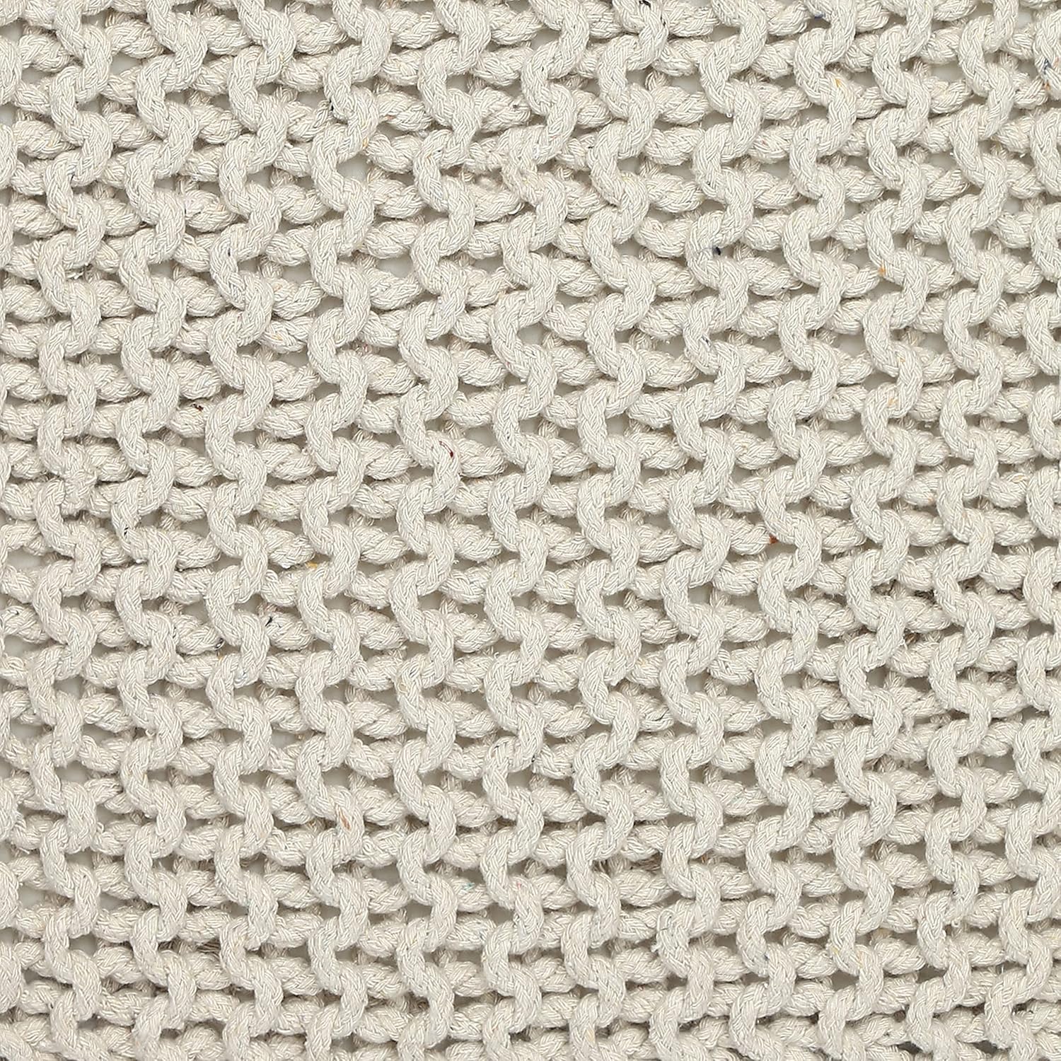 • HANDMADE FROM THE FINEST MATERIALS: The outer material on this eye-catching pouf ottoman is made from 100% cotton chord knitted in a unique pattern and filled with thermocol block inserts. Each floor pouf measures 16x16x16 inches and is handmade by our talented in-house artisans. This floor pouf is perfect when you need to rest your leg