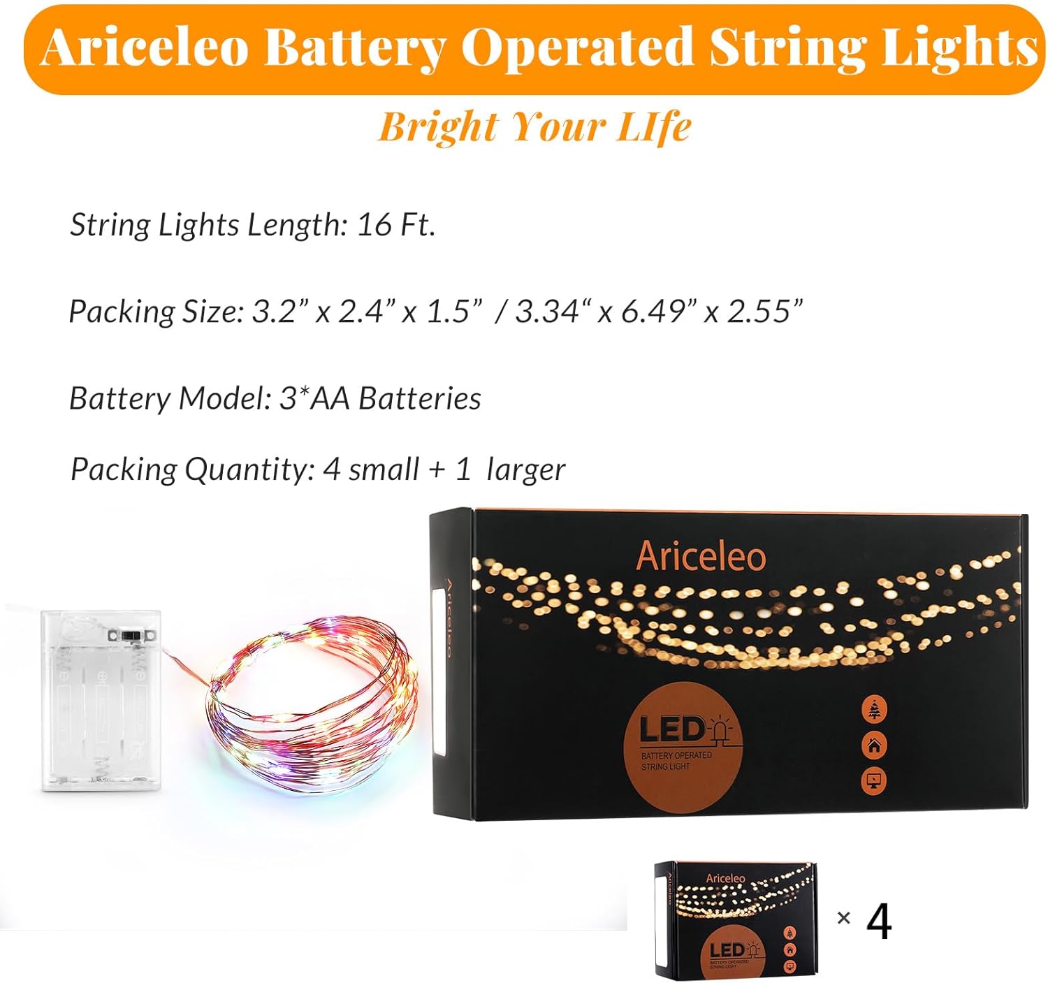 Led Fairy Lights Battery Operated, 4 Packs Mini Battery Powered Copper Wire Starry Fairy Lights for Bedroom, Christmas, Parties, Wedding, Centerpiece, Decoration (5m/16ft Multi-Colored)