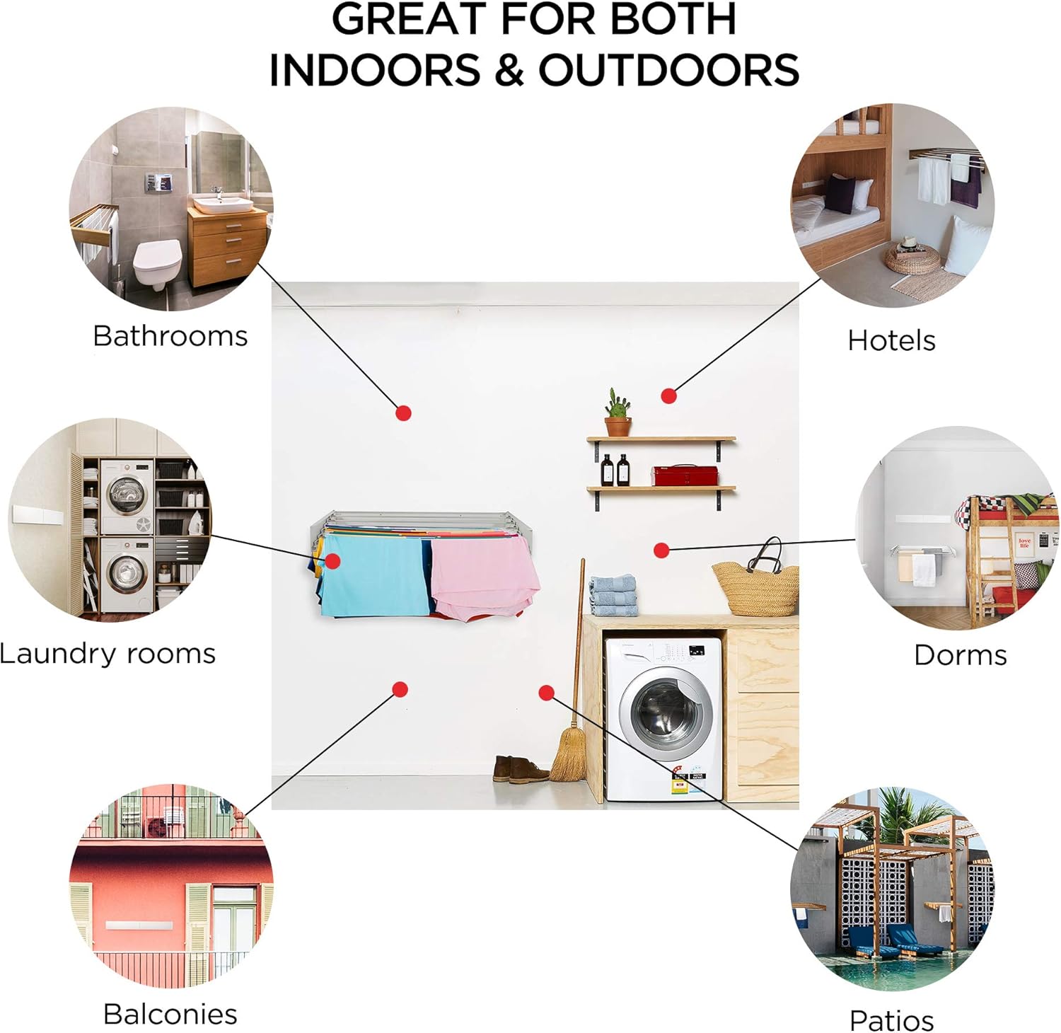 • INDOOR & OUTDOOR: Stainless steel and aluminum components make it perfect for patios, balconies, RVs as well as laundry rooms, bathrooms, hotel and dorm rooms.