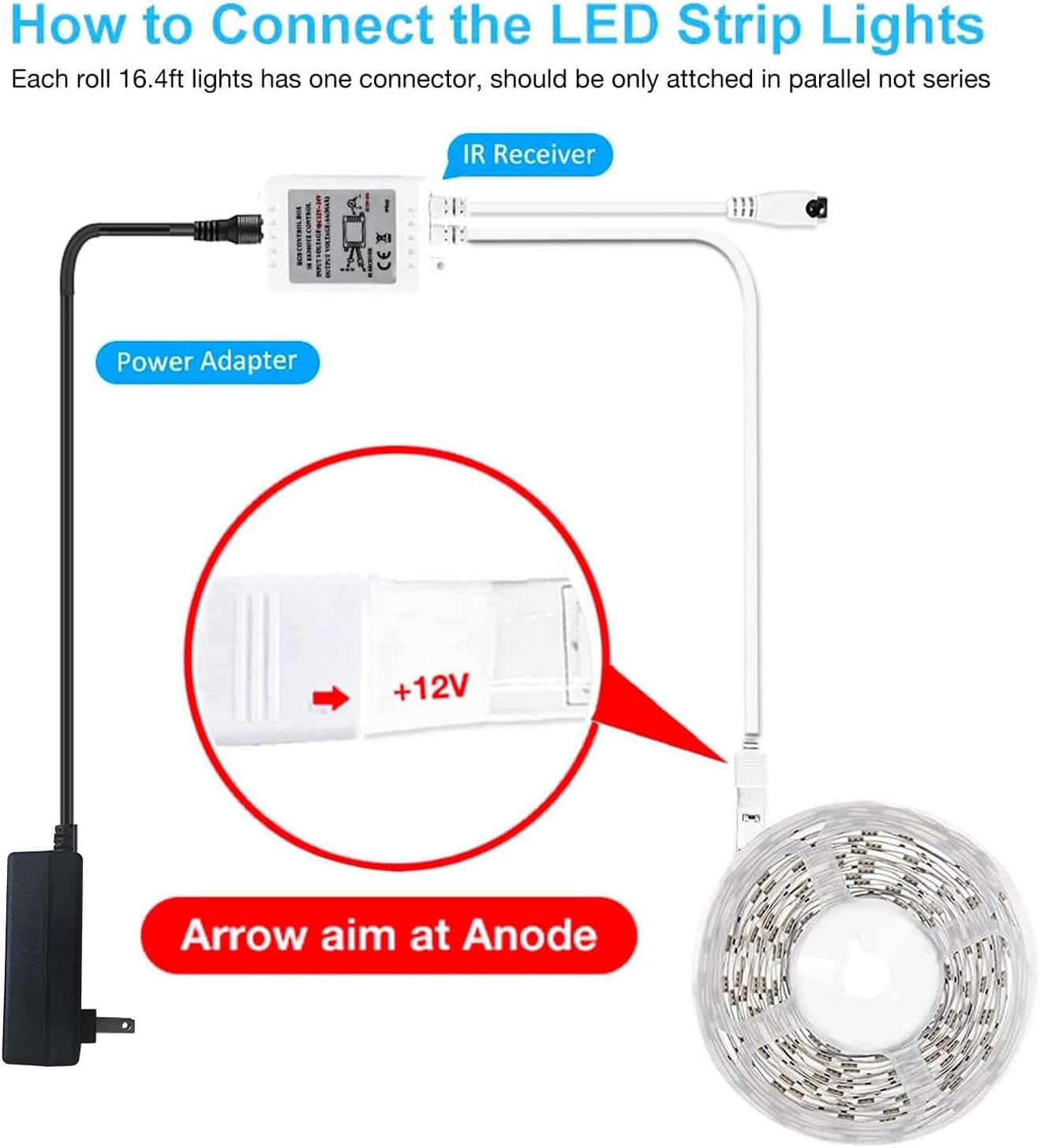 • Strong self adhesive: The led strip lights has strong self adhesive so they stick very well on tv, cars, cabinets and wall; Please test the led light strip before installation, the strip can be connected in parallel, not in series