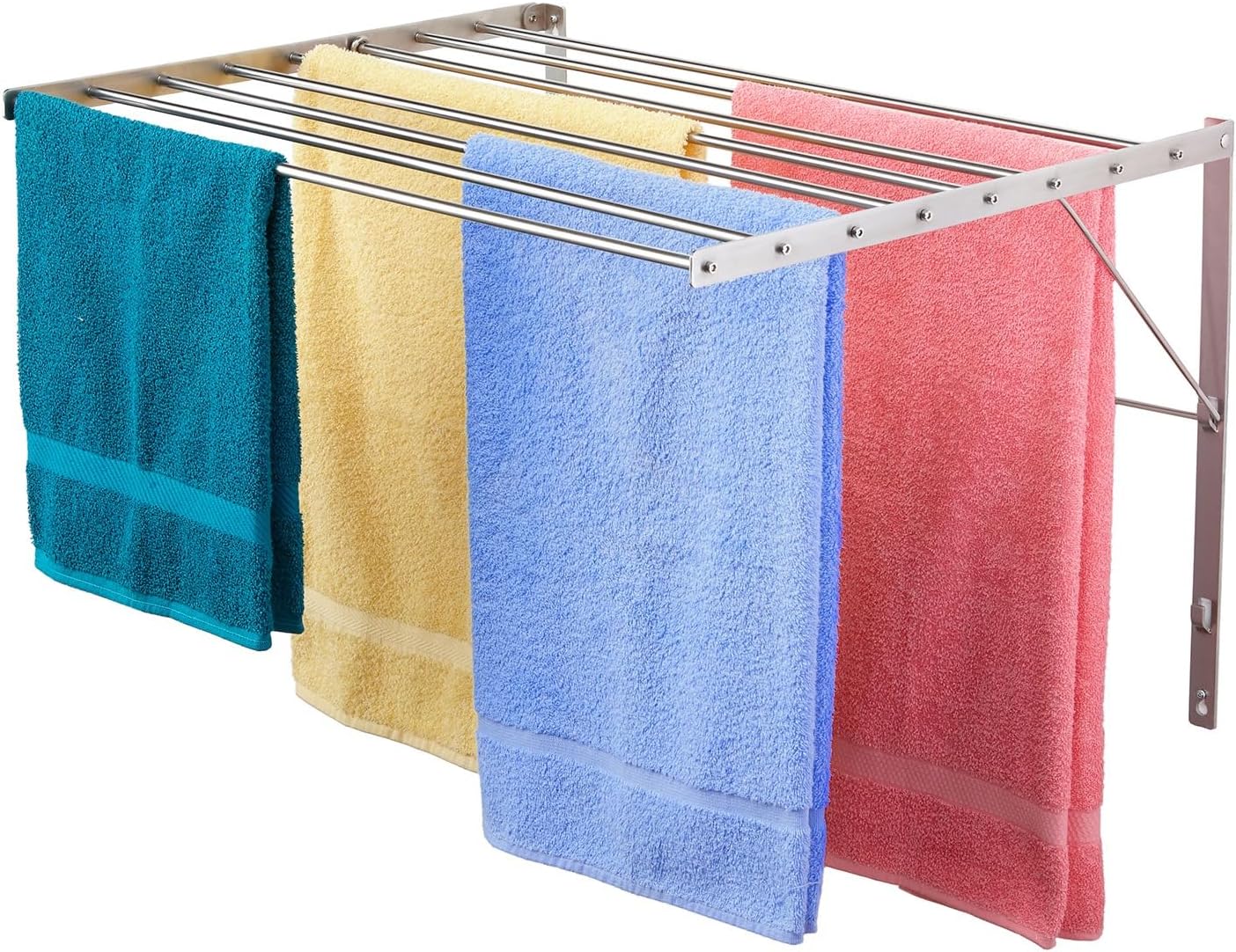 • VERSATILE AND FUNCTIONAL - Use the wall mounted drying rack for everything, from heavy towels to air drying delicate clothing that cannot be put in a dryer. Can be used as a laundry room organizer, towel drying rack, hanging rack for clothes and much more. Sturdy construction and top quality rust-free stainless steel ensure years of use.