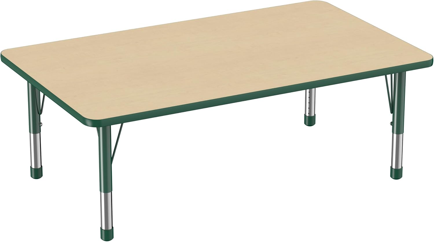 Factory Direct Partners FDP Rectangle Activity School and Classroom Kids Table (36 x 60 inch), Toddler Leg, Adjustable Height 15-24 inches - Maple Top and Green Edge