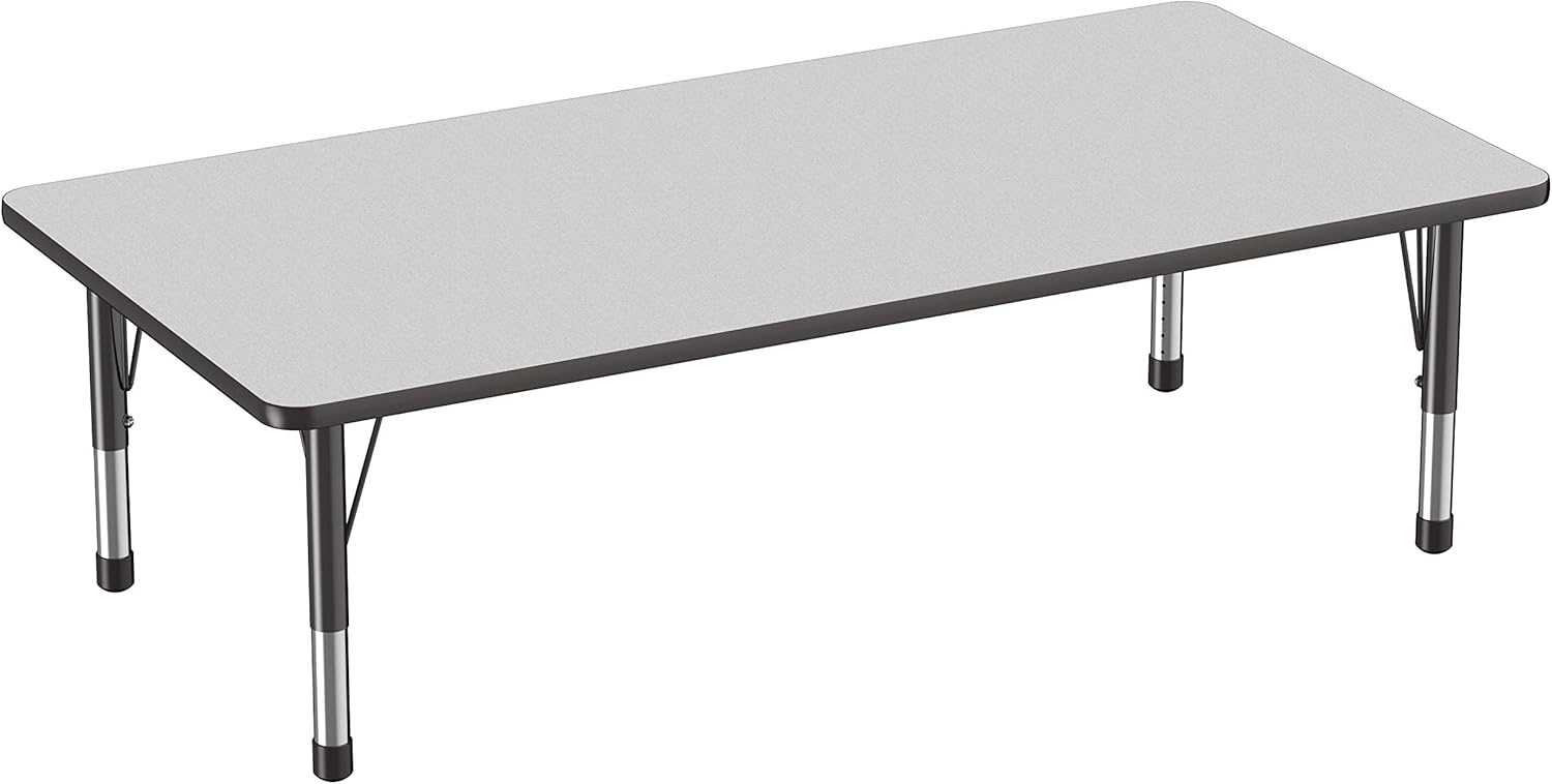 FDP Rectangle Activity School and Classroom Kids Table (36 x 72 inch), Toddler Legs, Adjustable Height 15-24 inches - Gray Top and Black Edge