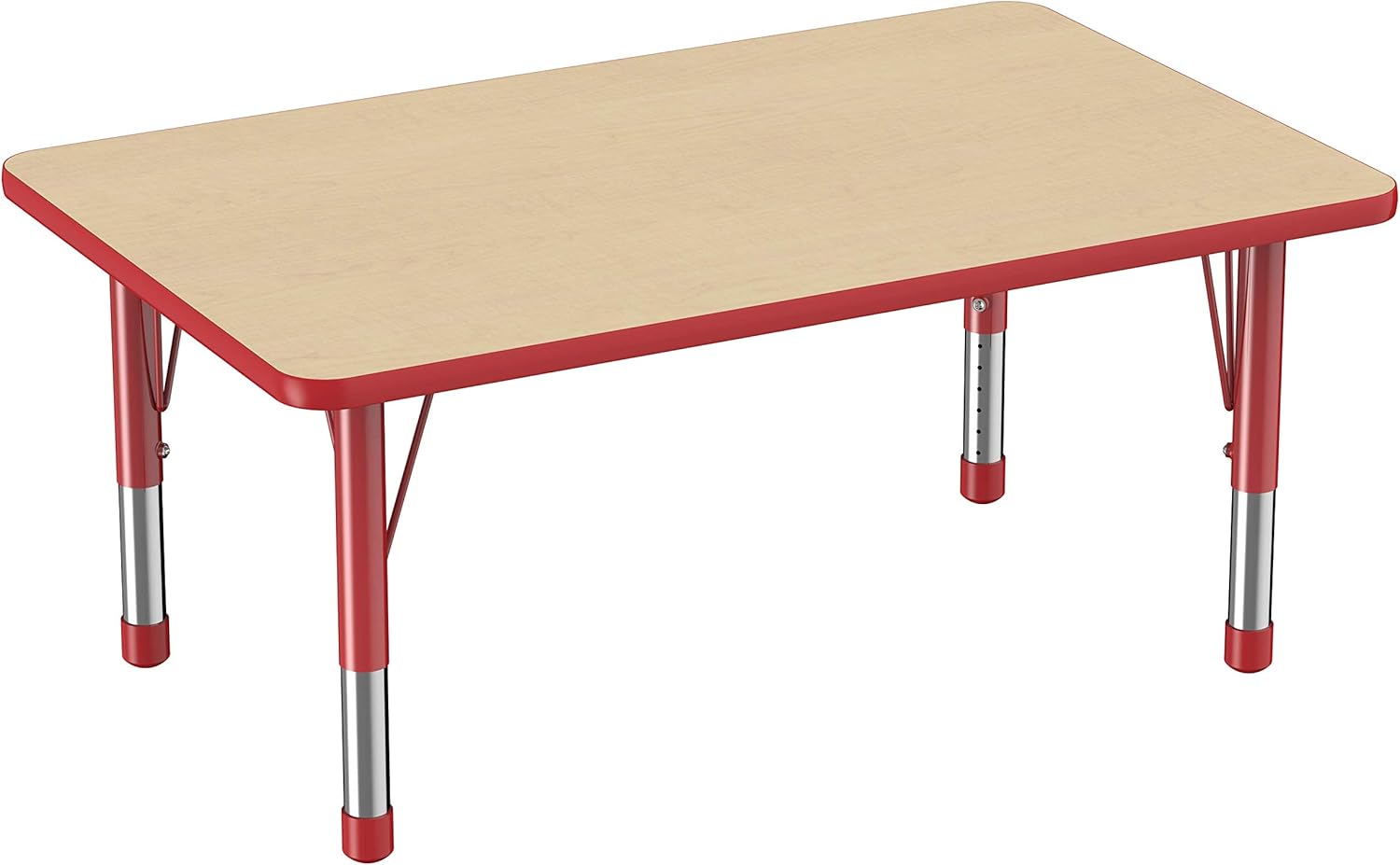 FDP Rectangle Activity School and Classroom Kids Table (30 x 48 inch), Chunky Toddler Legs, Adjustable Height 15-24 inches - Maple Top and Red Edge