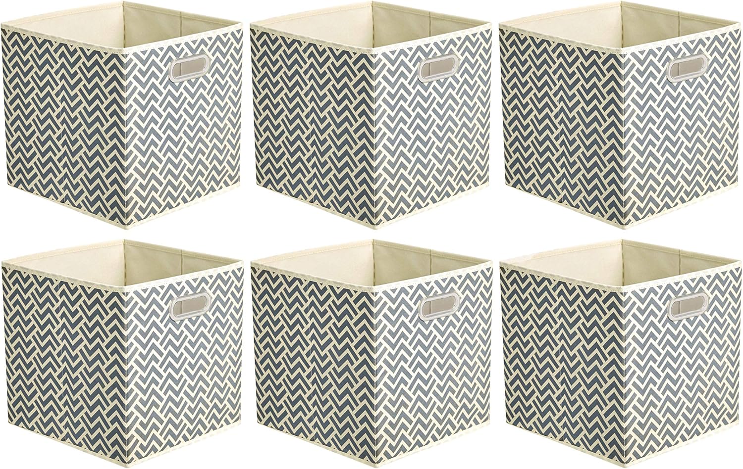 Amazon Basics Collapsible Cube Storage Organizer Bins, 6-Pack, 10.5 x 10.5 x 11 inches, Chevron Grey