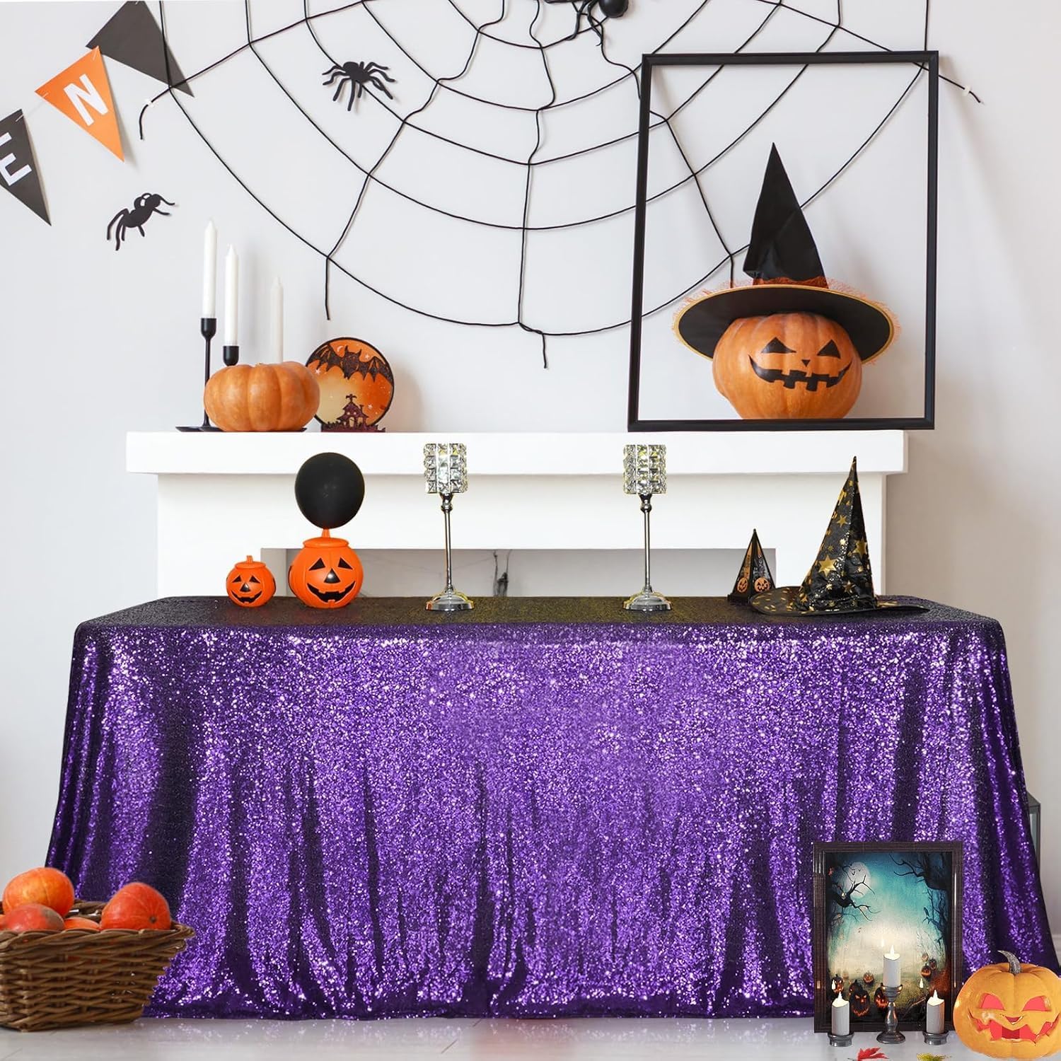 SquarePie Sequin Tablecloth 90 x 132 Inch Purple Sparkly Table Linen for Wedding Halloween Party